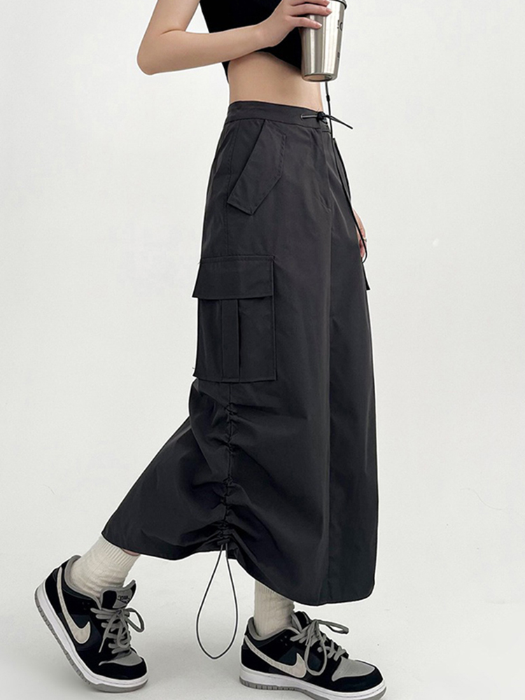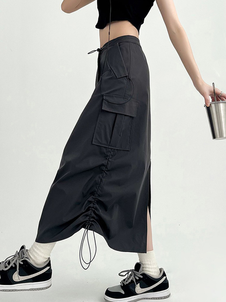 工装半裙女大码胖mm梨型身材裙子显瘦遮肉微胖设计感长款半身裙