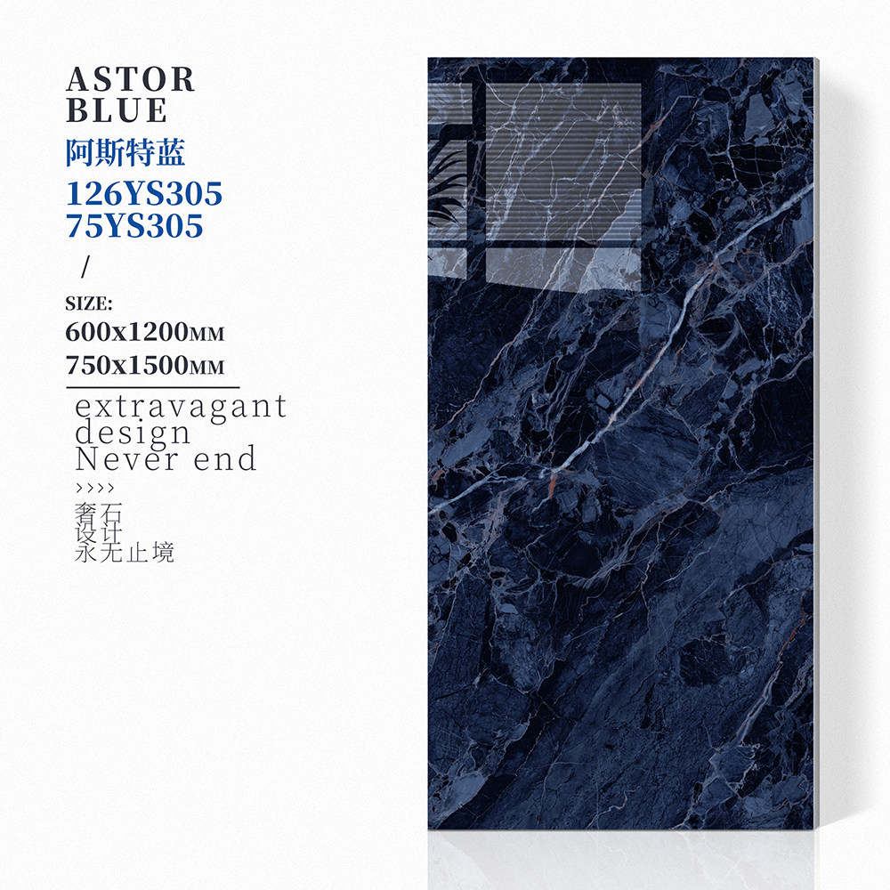 600x1200奢石瓷砖海洋蓝通体砖 客厅玄关背景墙地砖 广东佛山发货