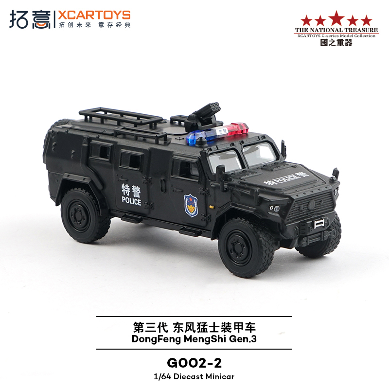 拓意1/64合金警用东风轮式装甲突击车第三代猛士CSK181型特警车模