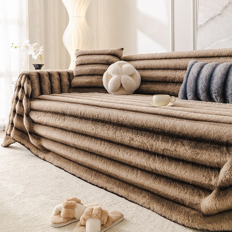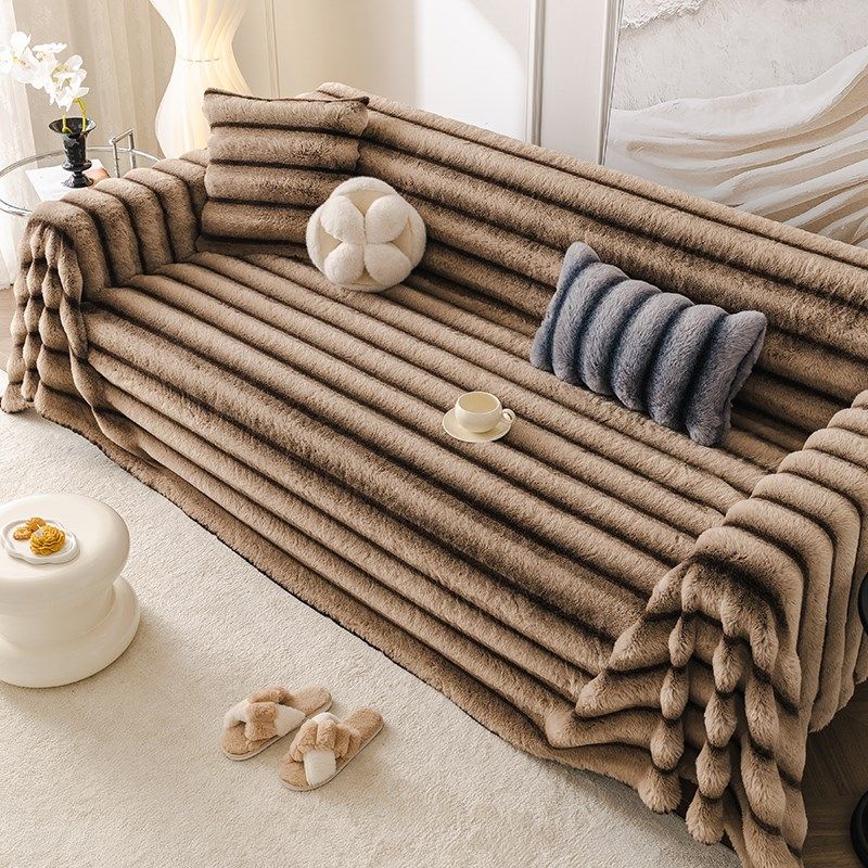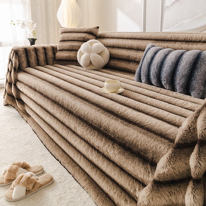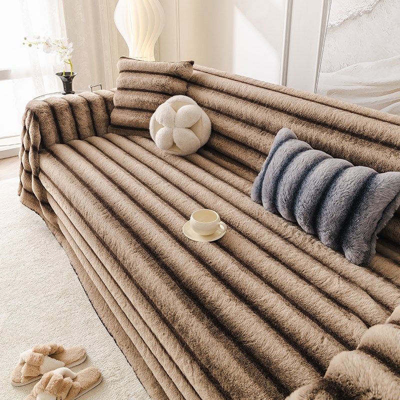 轻奢兔毛绒沙发垫冬季加厚防滑2025新款秋冬坐垫子皮沙发套罩盖布
