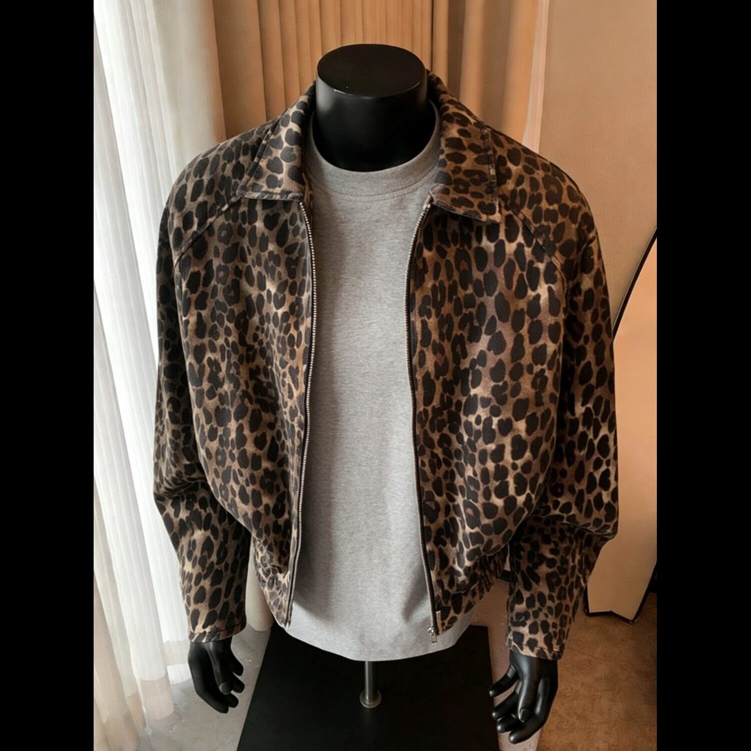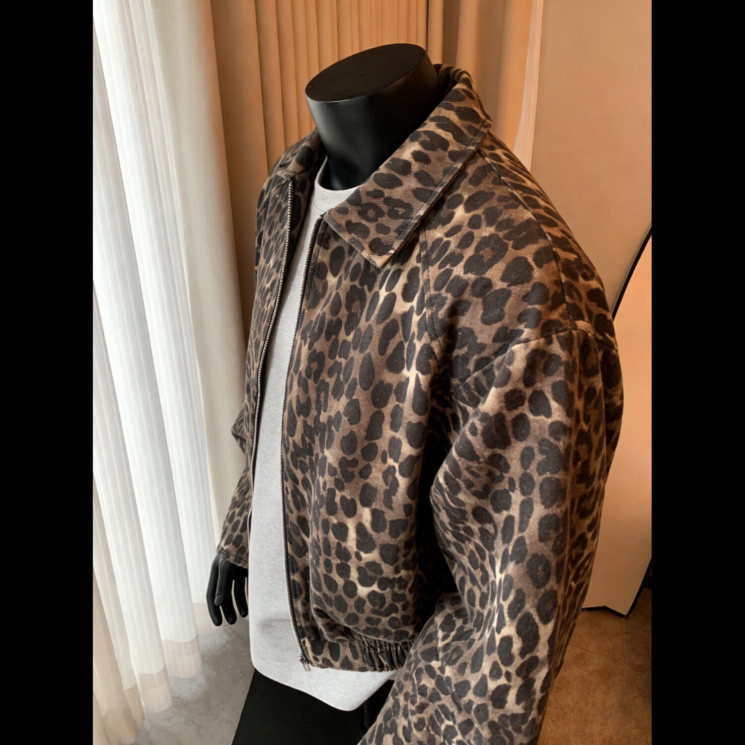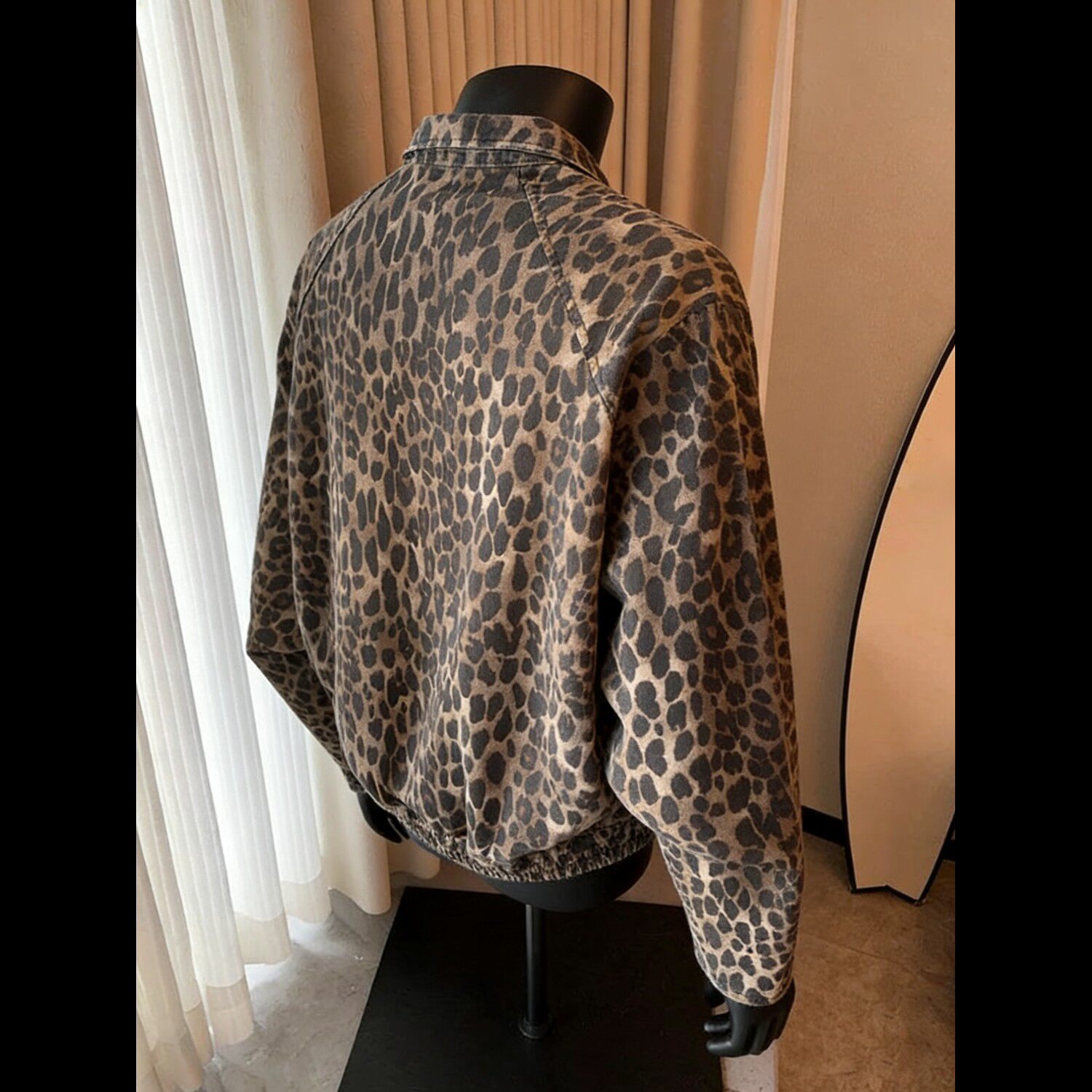豹纹牛仔外套男女春秋季短款夹克