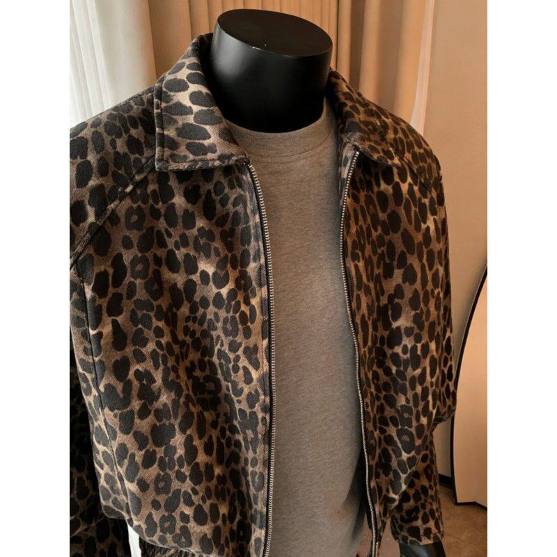 美式复古豹纹水洗牛仔外套男女春秋季新款高级感潮牌痞帅短款夹克