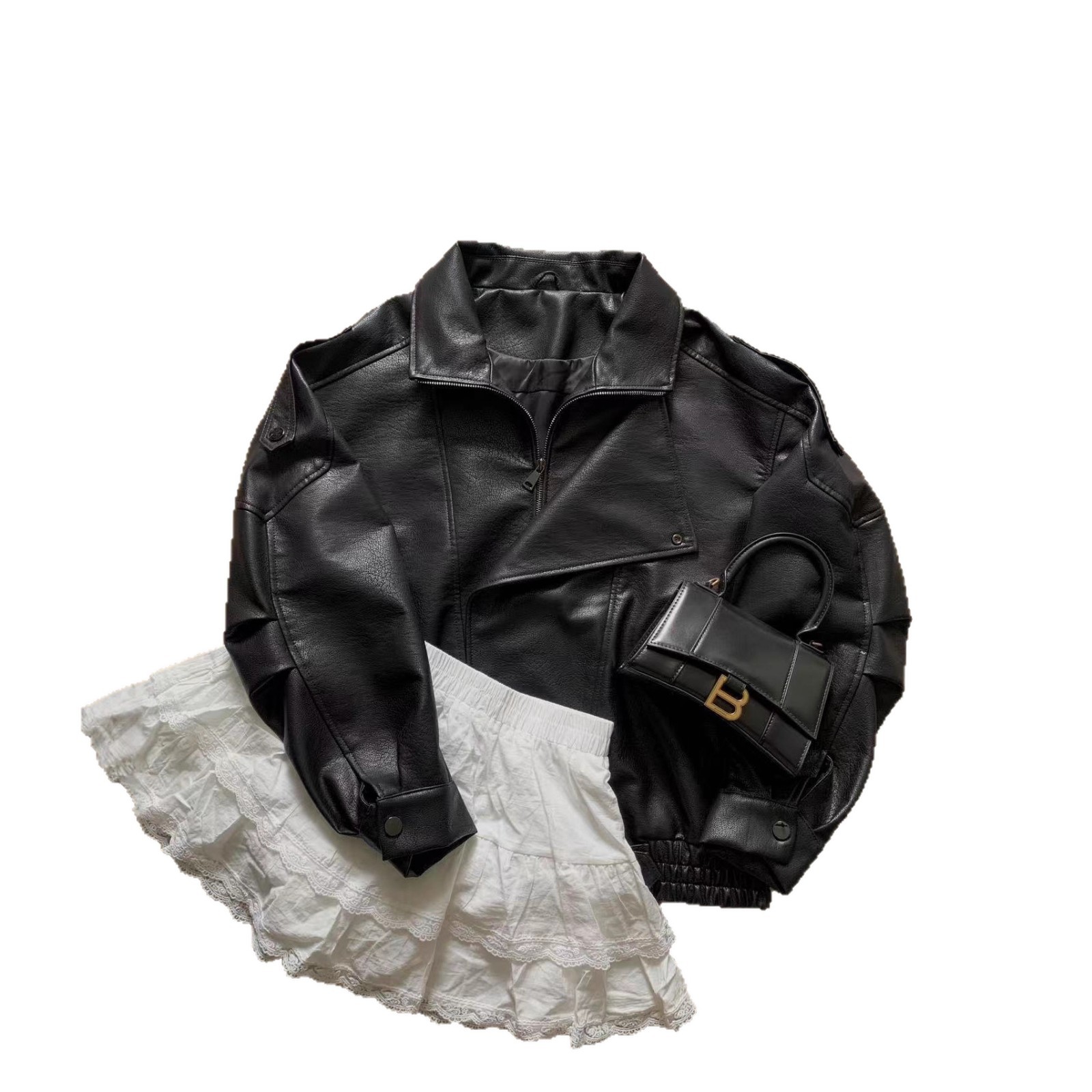 Y*L皮衣du家匠心翻领廓形仿羊皮外套接头简约夹克女复古pu机车服