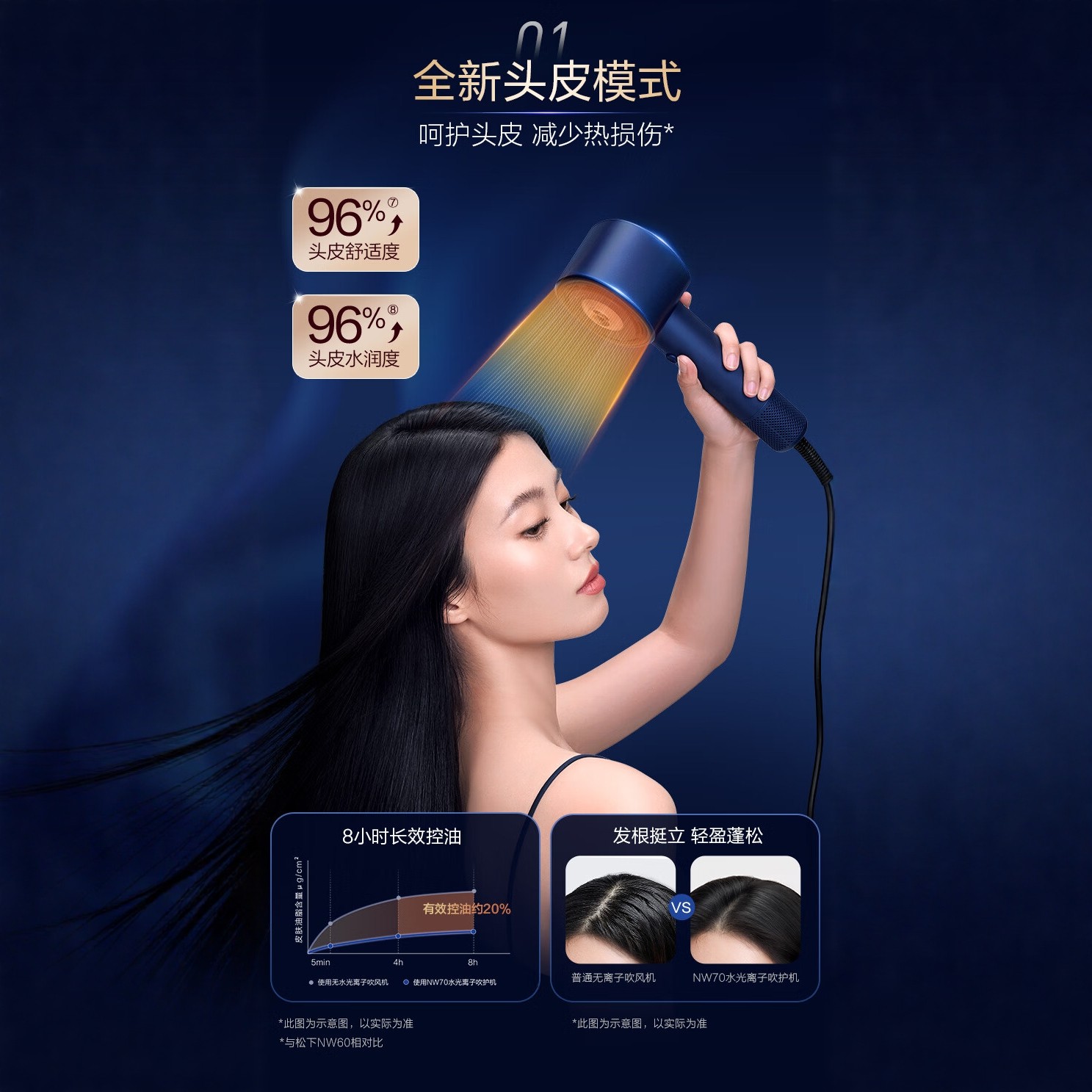 松下纳诺怡高速电吹风花芯pro负离子护发吹风机深蓝家用礼物NW70