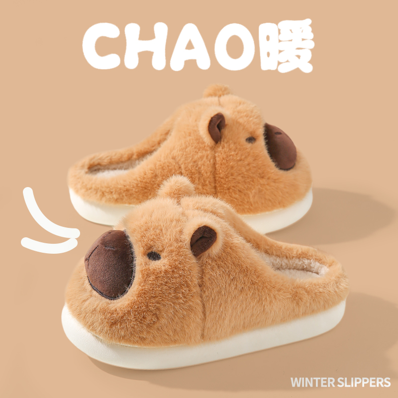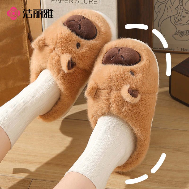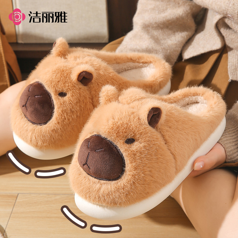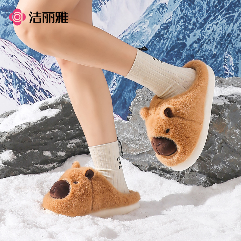 洁丽雅棉拖鞋女款冬季2025新款可爱卡皮巴拉室内外穿保暖防滑毛绒