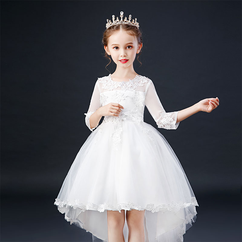 儿童夏款拖尾连衣裙小女孩公主裙花童婚纱晚礼服钢琴演出服蓬蓬裙