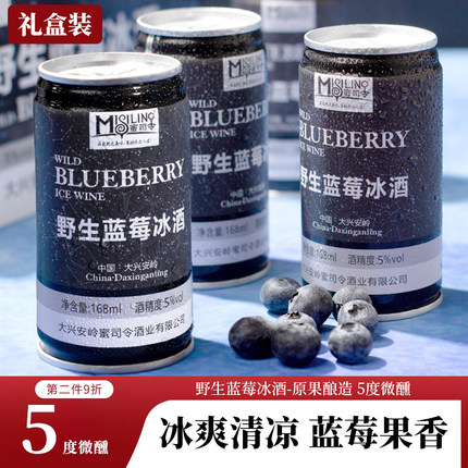 大兴安岭野生蓝莓冰酒小罐装葡萄酒女士低度微醺甜酒水果酒礼盒装