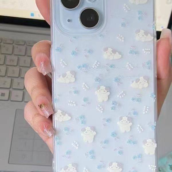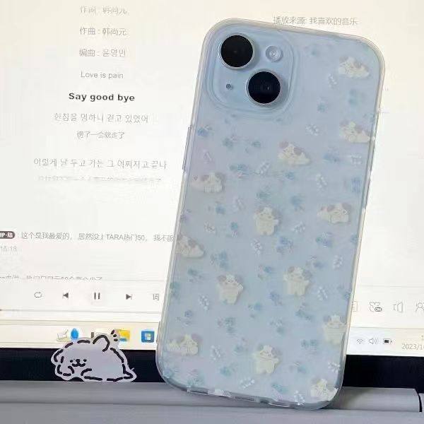 蓝花朵狗日韩风适用苹果11全包透明手机壳iPhone12/13/14/15promax小清新6/7/8plus可爱xsmax/xr防摔保护4/5s