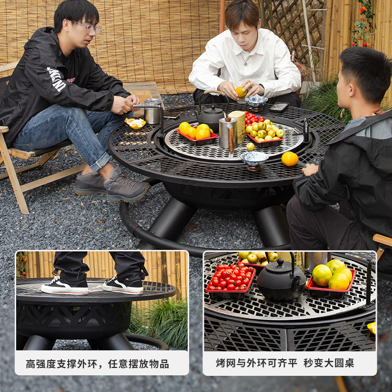 户外烧烤炉烧烤架围炉煮茶烤火炉家用烧烤桌庭院篝火炉炭火盆商用