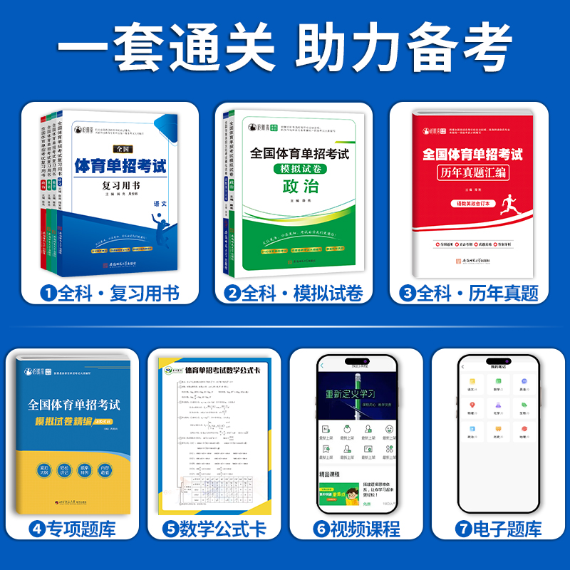 2025全国体育单招语文数学英语政治模拟试卷真题语数英全套6本 知识点归纳复习教材高职单招资料复习用书同步训练辅导考试模拟测试