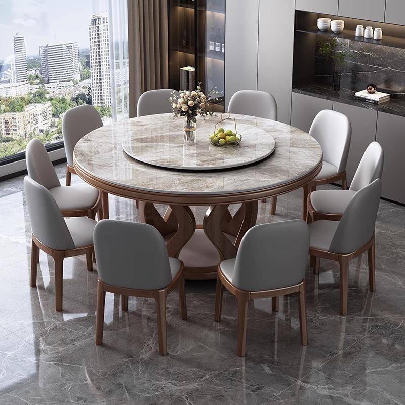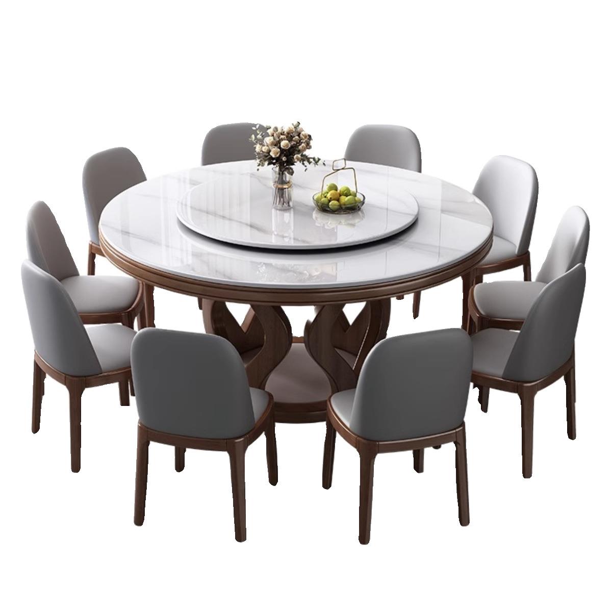 实木岩板餐桌椅组合现代简约高级感小户型圆形家用1.2/1.8米圆桌