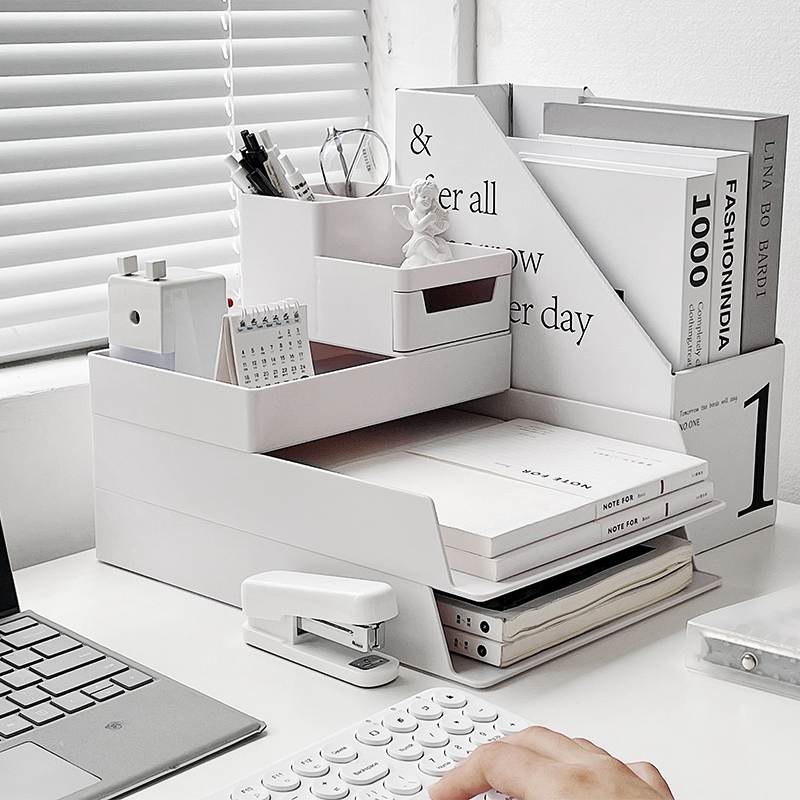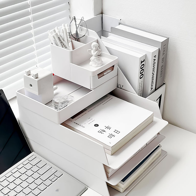 桌面置物架办公室文件A4多层书架办公文具笔筒工位收纳神器收纳盒
