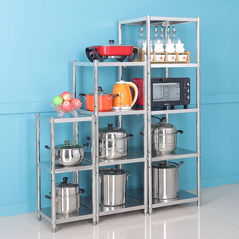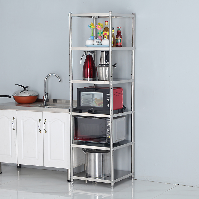 304不锈钢厨房置物架落地多层微波炉整理储物架子夹缝窄五层锅架