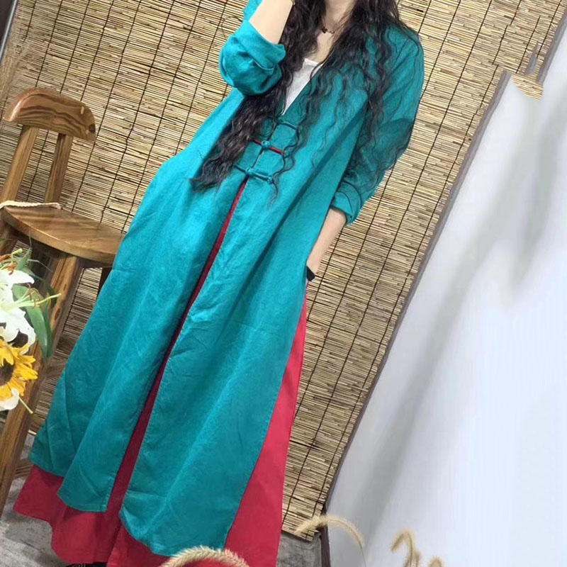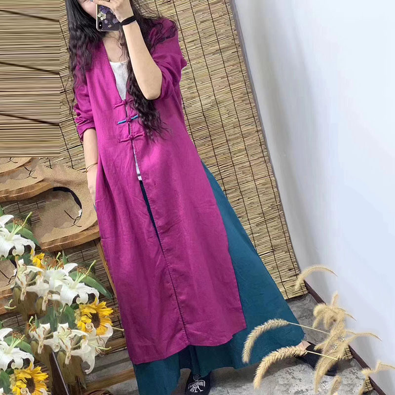 民族风春秋复古盘扣亚麻中长款风衣棉麻阔腿裤复古两件套麻料女装