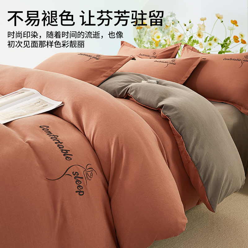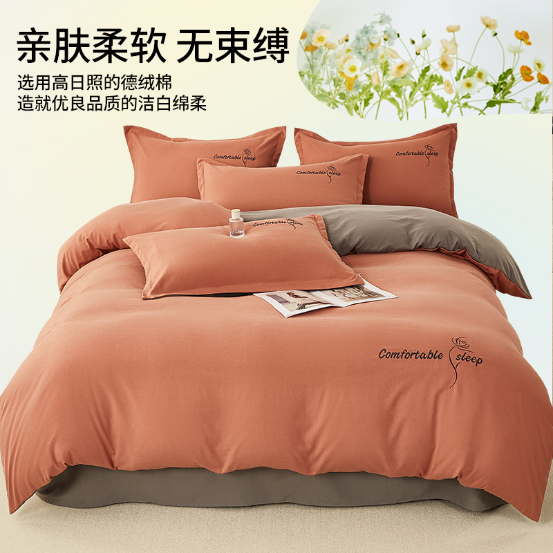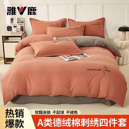 雅鹿四件套德绒棉刺绣套件 A类床单被套床笠绣花秋冬床上用品A