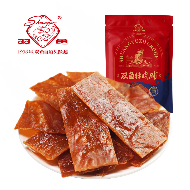 双鱼牌猪肉脯358g靖江特产休闲零食猪肉铺散称独立小包装猪肉干片