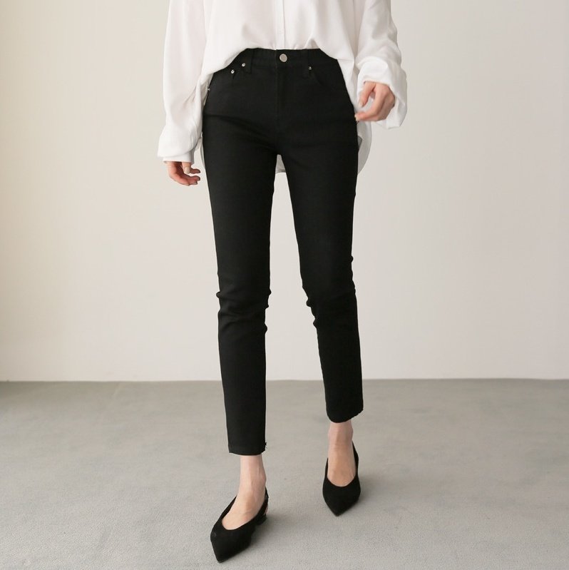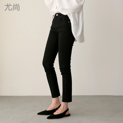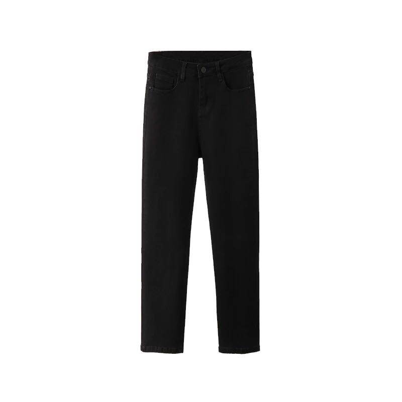 高腰直筒牛仔裤女九分韩国夏天弹力显瘦烟管八分小个子黑色基础款