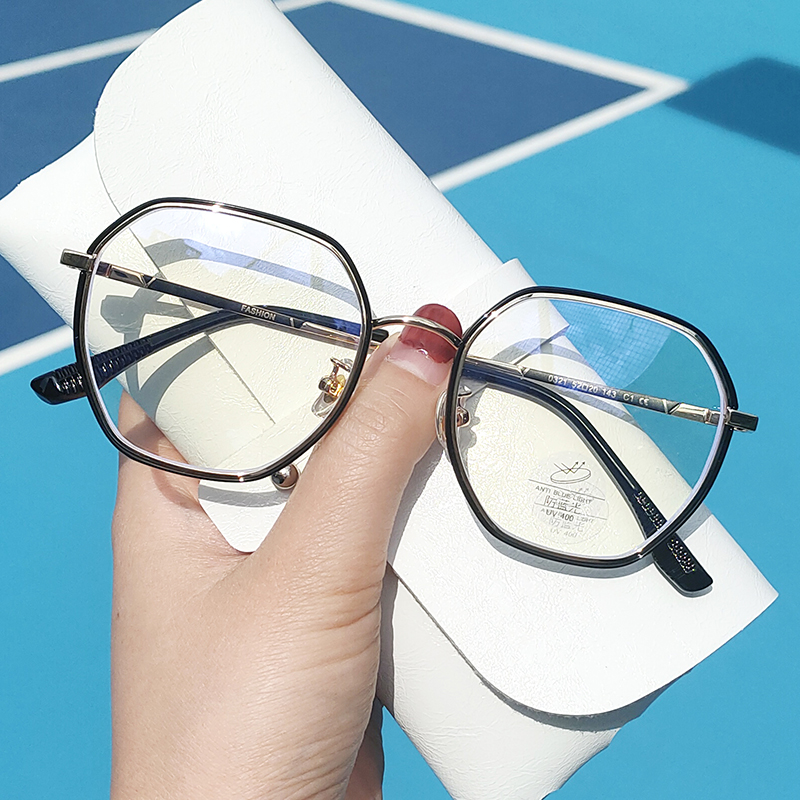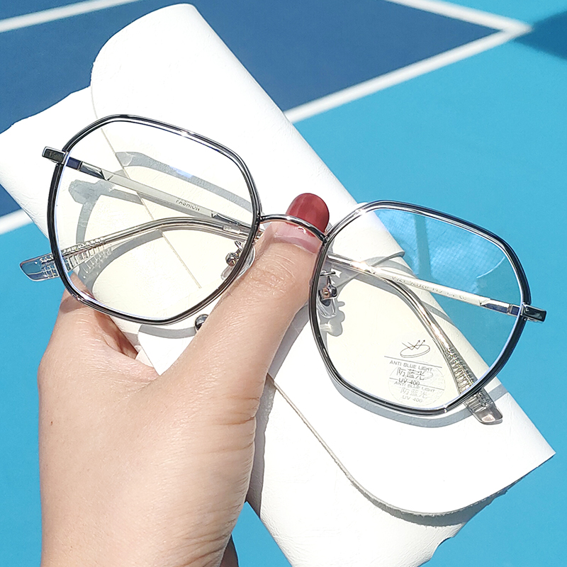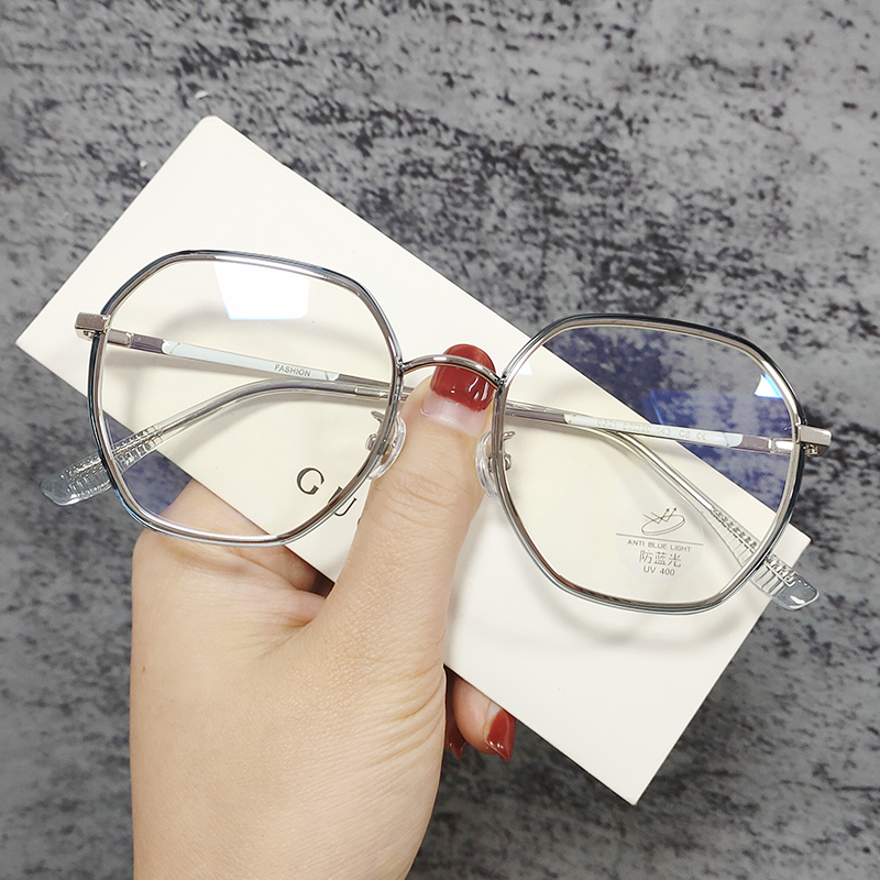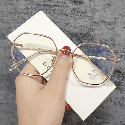 多边形透明眼镜框近视眼镜女变色防辐射抗蓝光素颜显脸小护目眼睛
