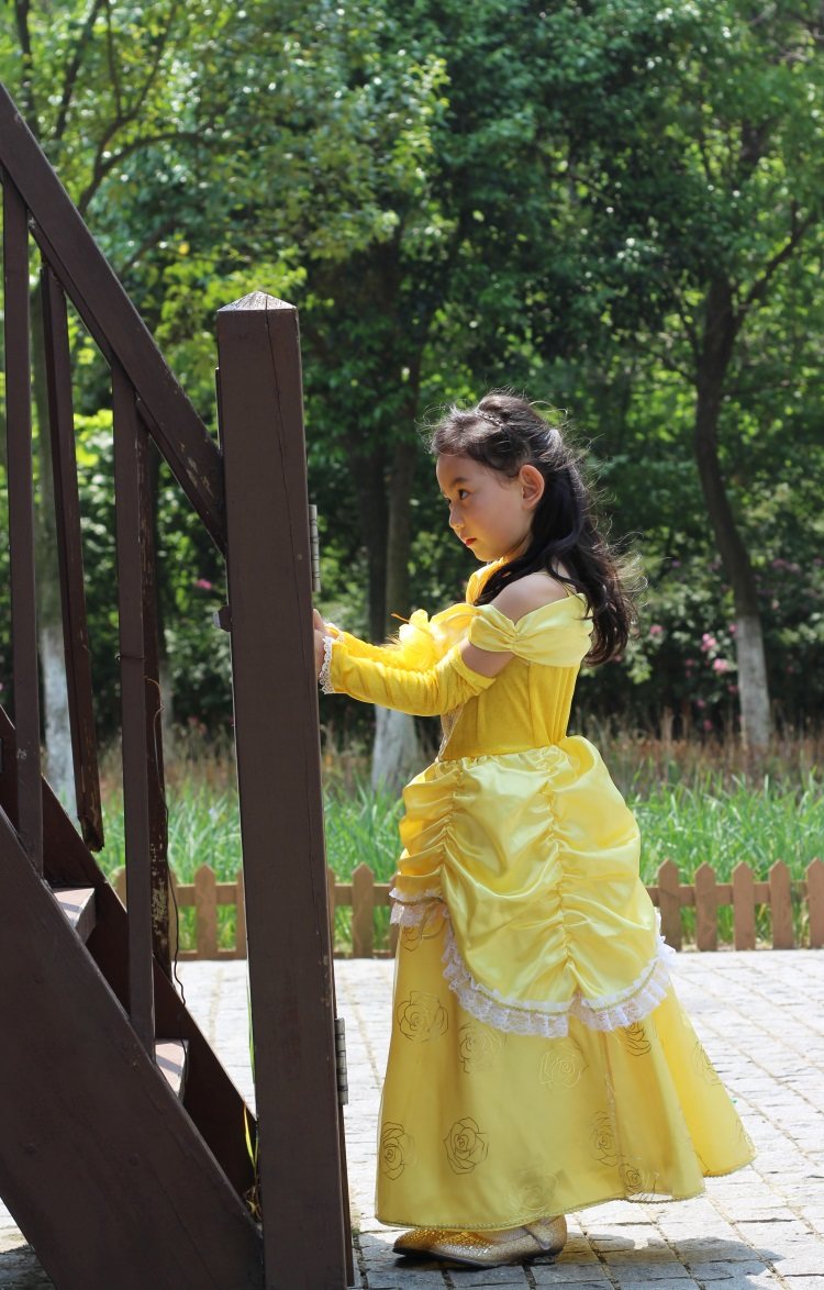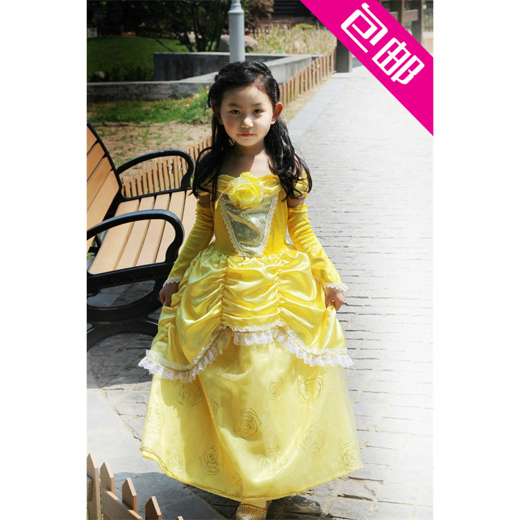 儿童贝儿公主裙万圣节贝尔装扮美女与野兽尔迪斯尼动画连衣裙套装