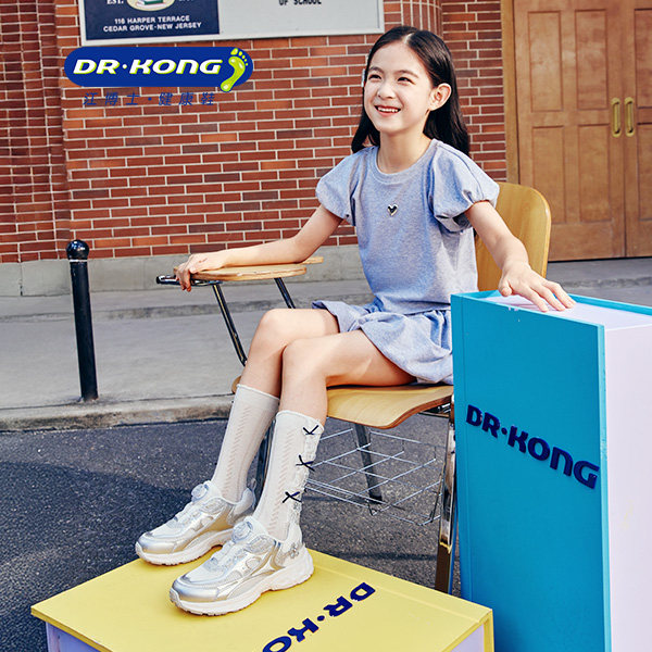 Dr.Kong江博士童鞋2026春新款透气旋钮扣女轻便儿童运动鞋