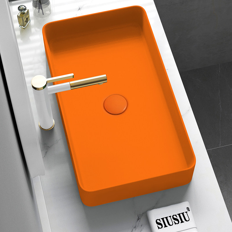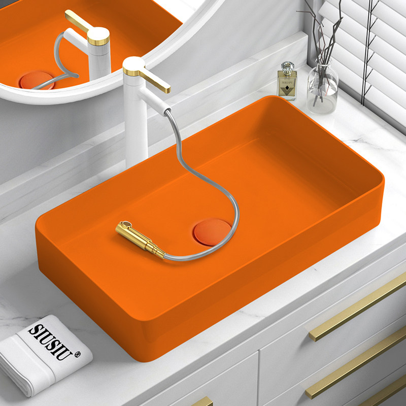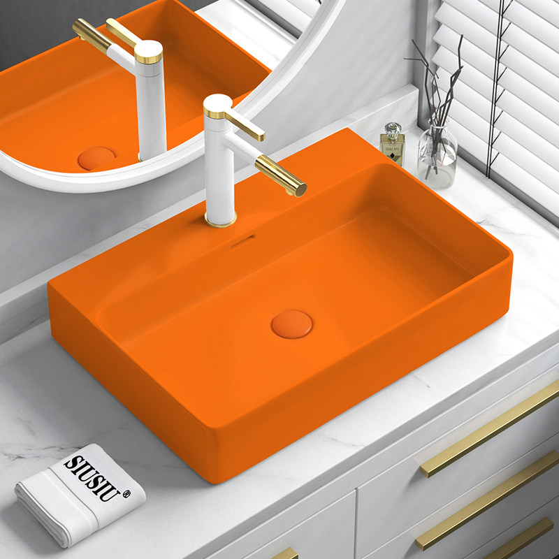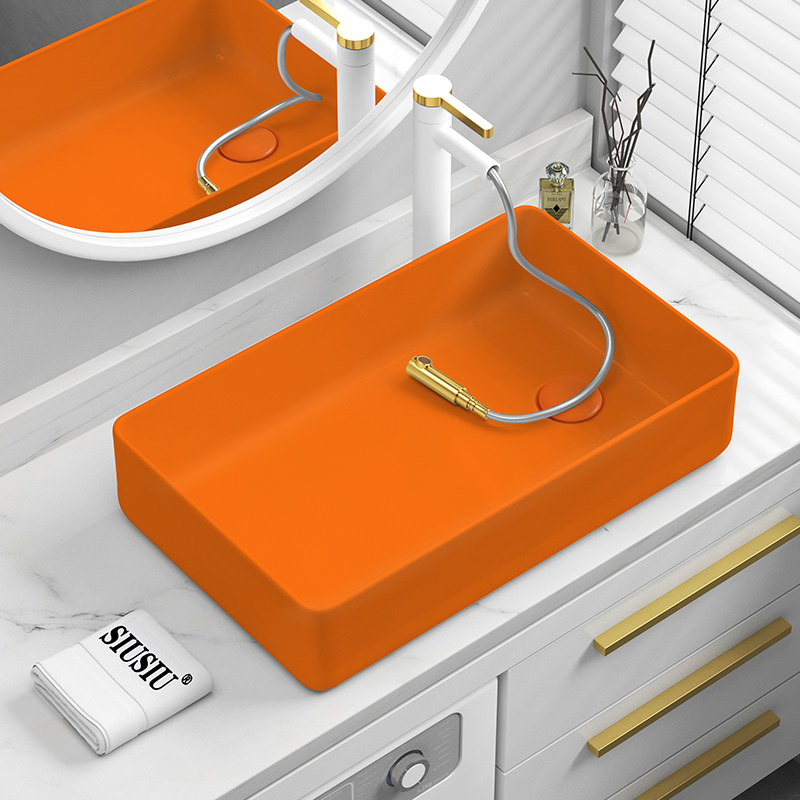 橙色陶瓷台上盆洗手盆洗面洗漱盆冷热水龙头小洗脸盆水池水