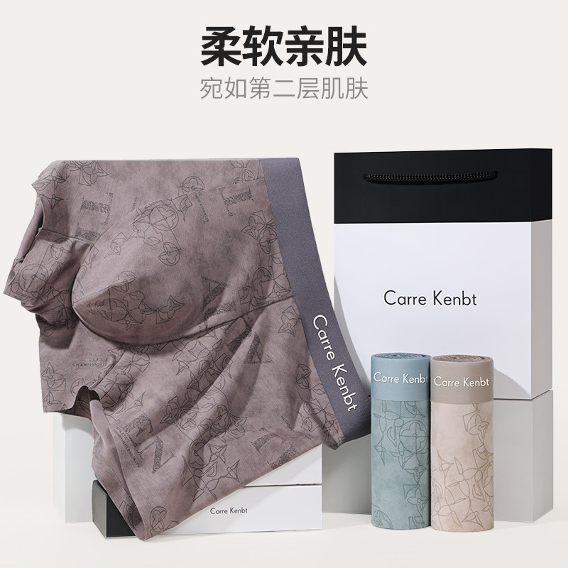 CarreKenbt礼盒内裤男士印花莫代尔四角裤桑蚕丝抗菌档男生平角裤