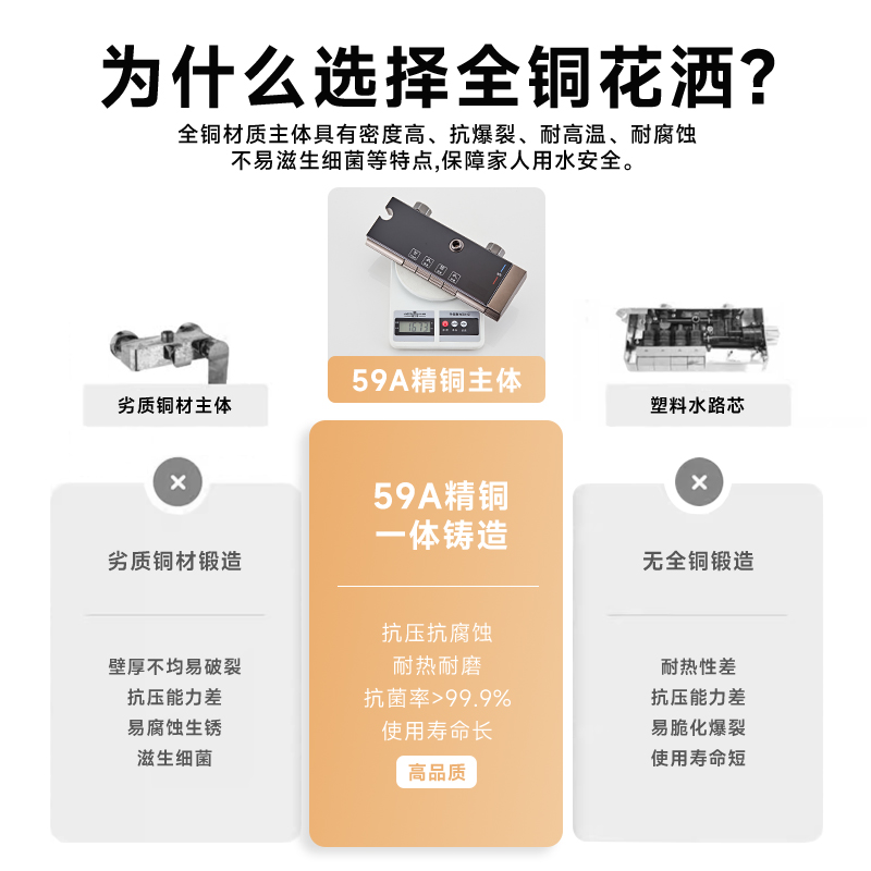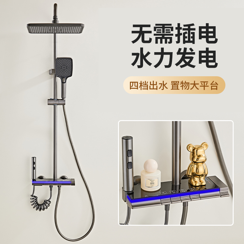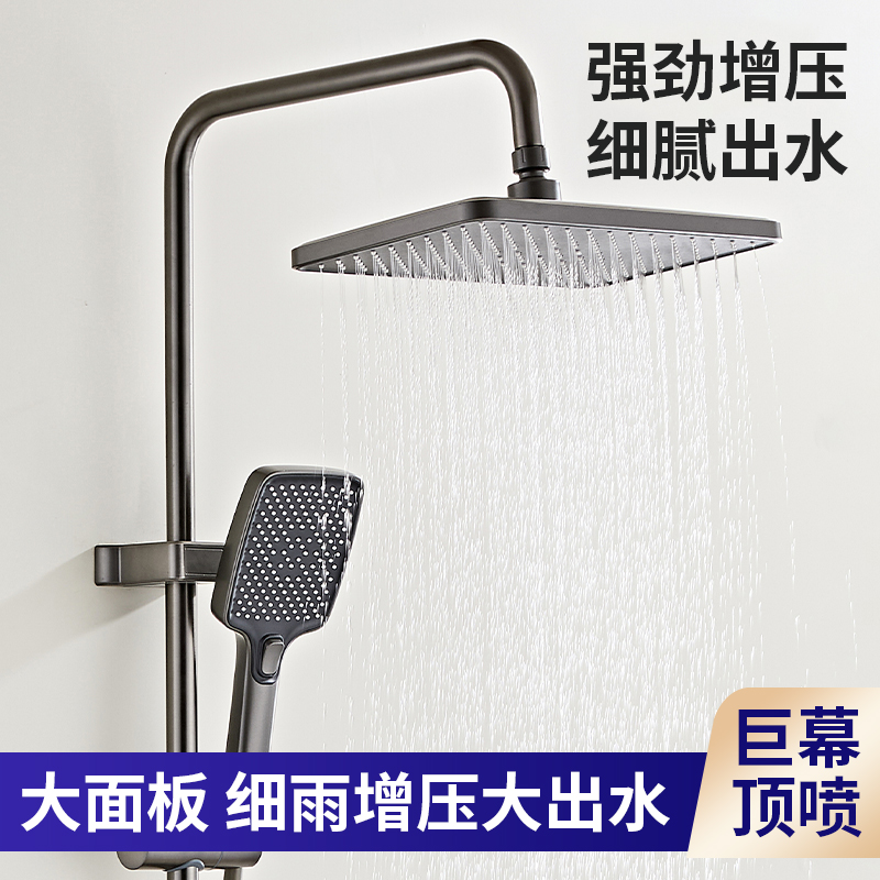 卫浴淋雨浴花洒套装灰色恒温家用十大品牌黄铜增压数显控温