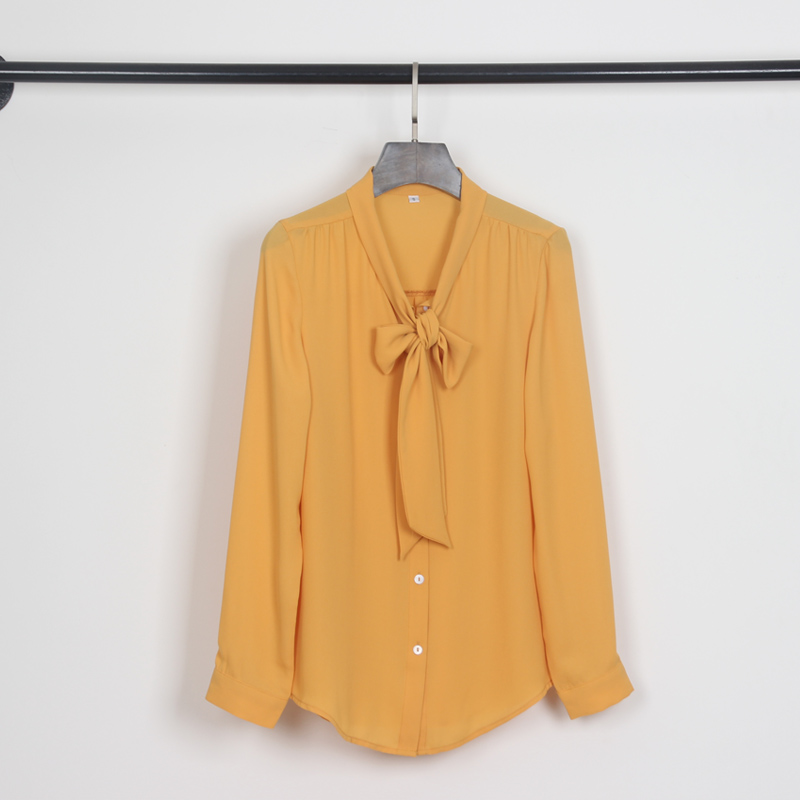 气质飘带长袖雪纺衬衫女2025春秋新款宽松显瘦蝴蝶结飘逸通勤上衣