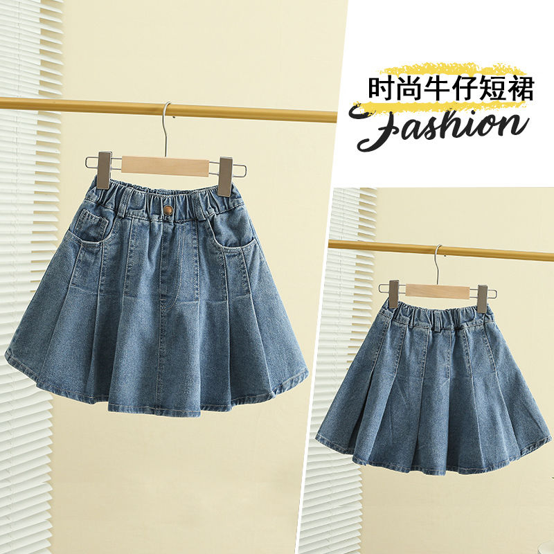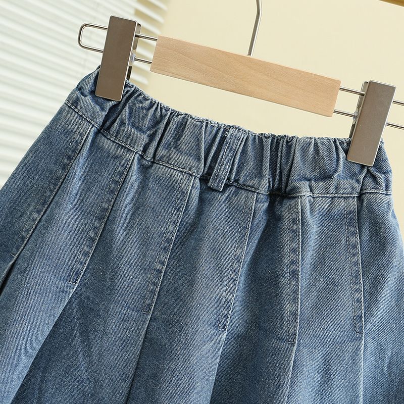 女童牛仔裙夏季2025新款中大童洋气百褶短裙儿童宽松时髦半身裙