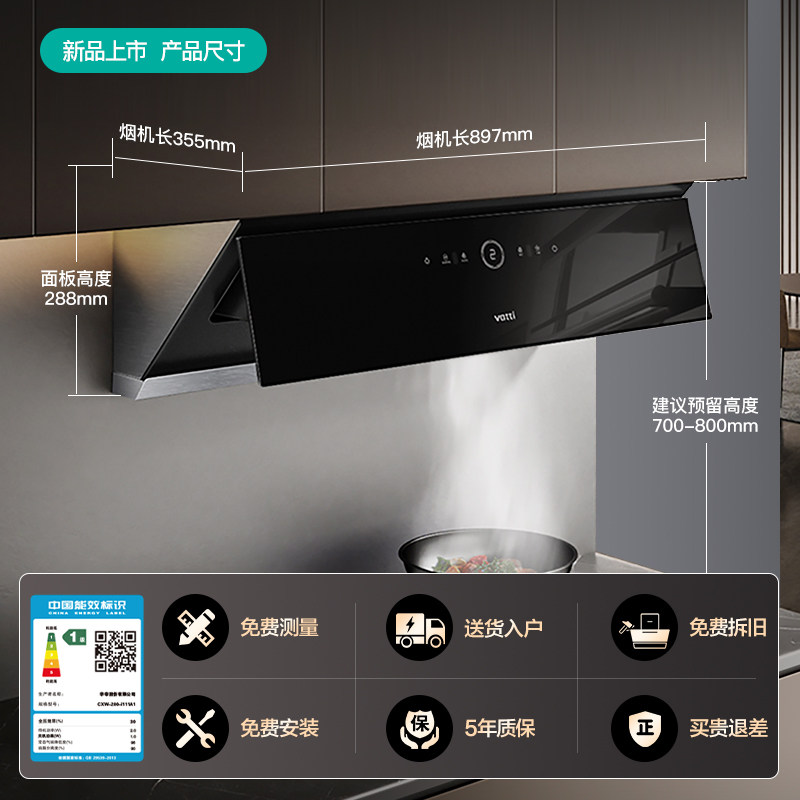 华帝大吸力变频顶侧双吸抽油烟机