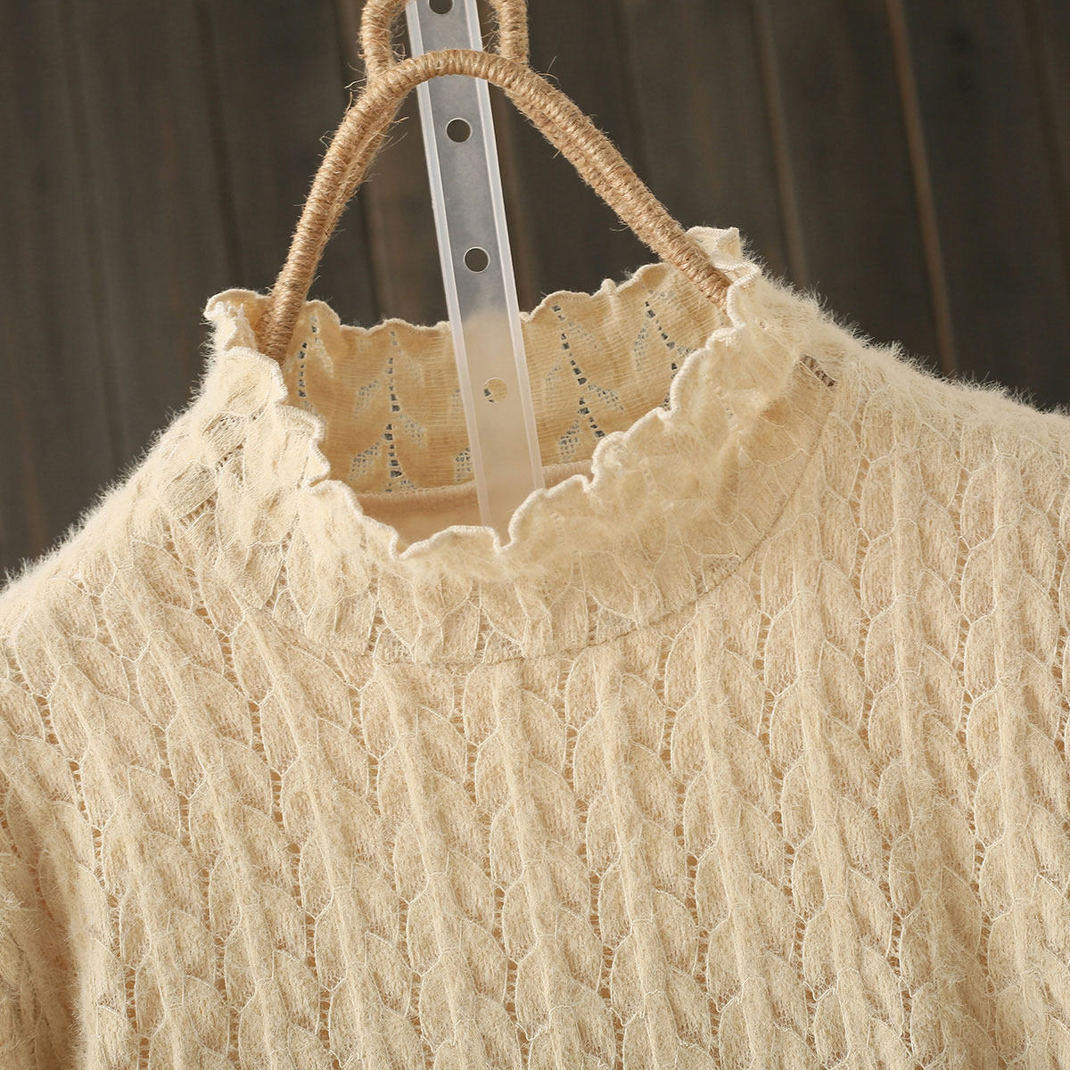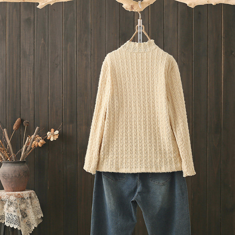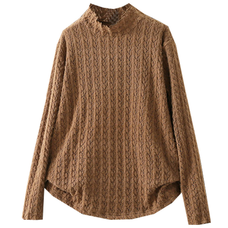 冬季大码200斤加绒加厚打底衫女胖mm高级感木耳领蕾丝保暖内搭潮