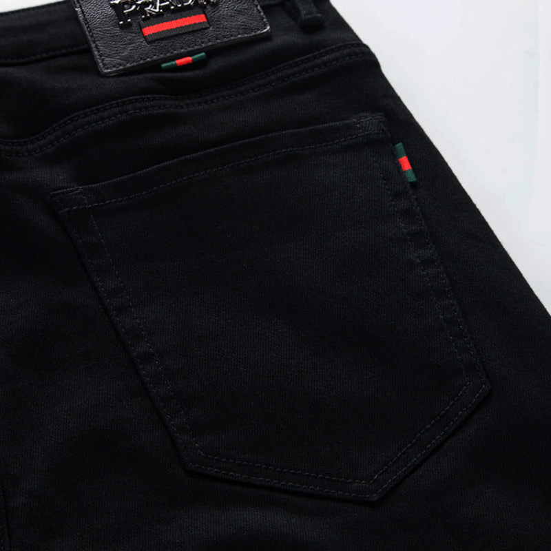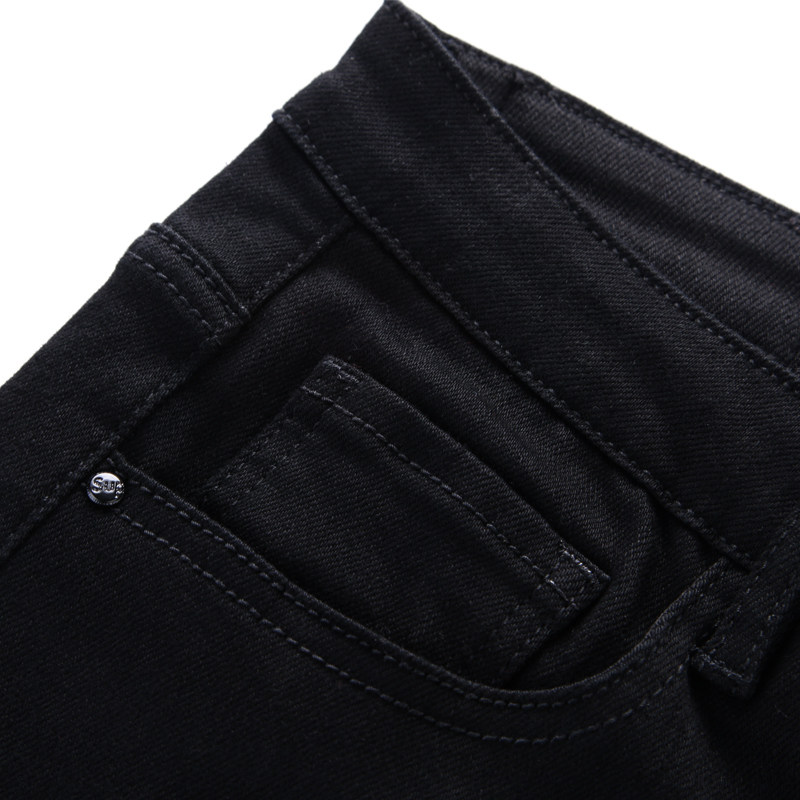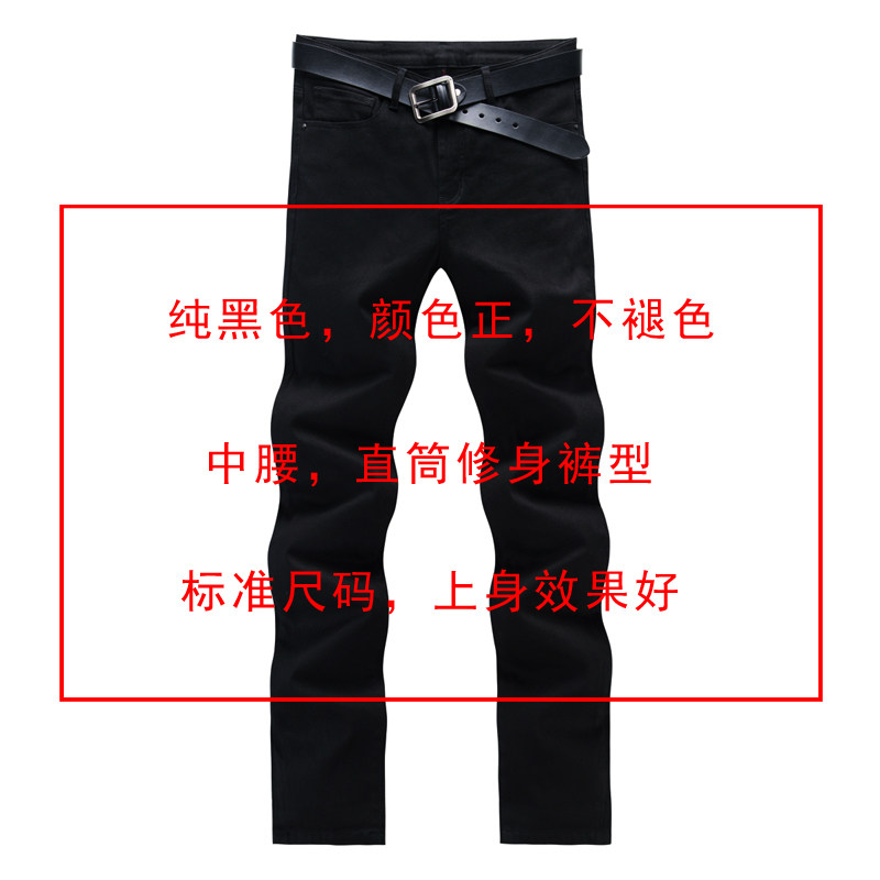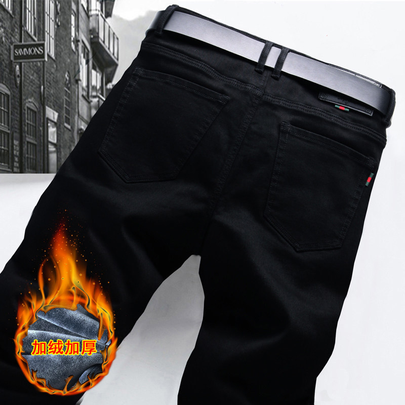 2025纯黑色牛仔裤男修身直筒裤弹力小脚不褪色裤子男秋冬加绒长裤