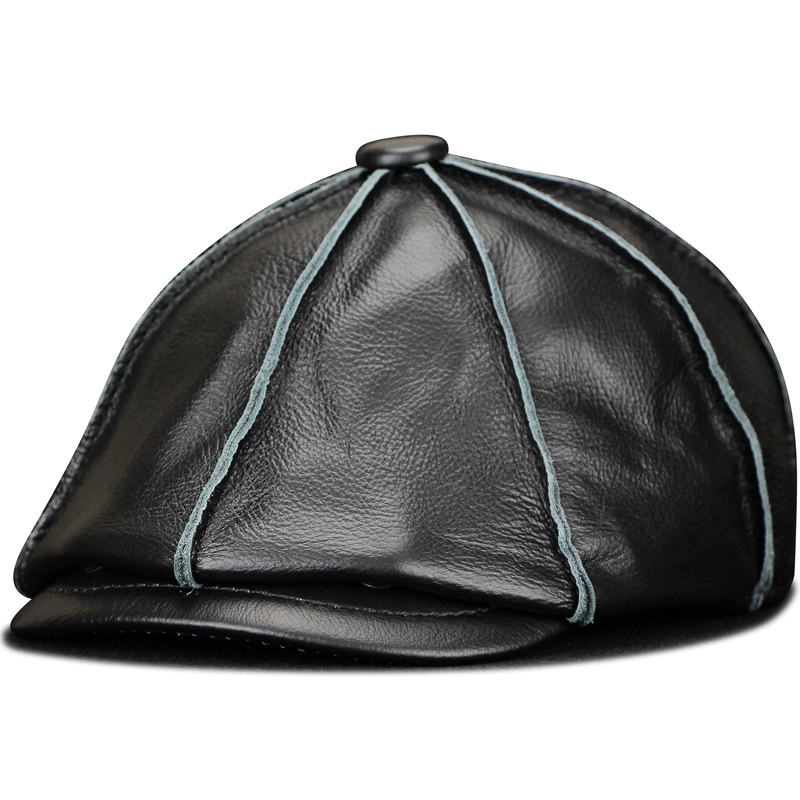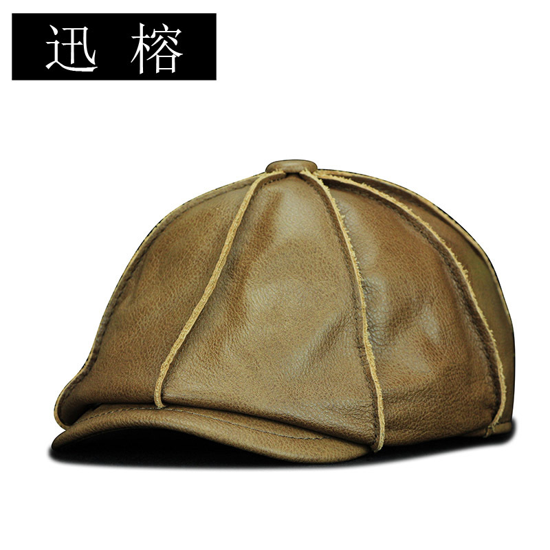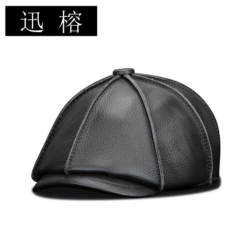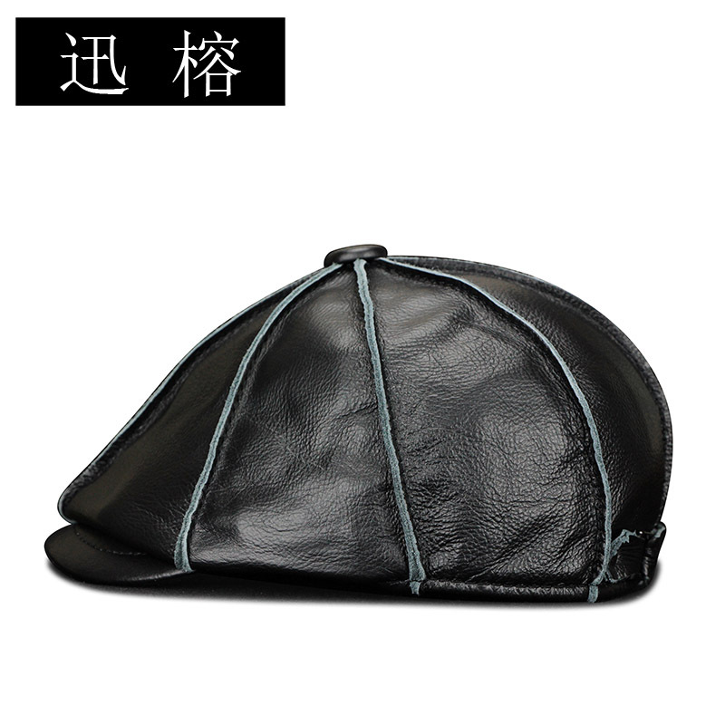 鸭舌帽男中老年冬季老人皮帽子牛皮保暖帽女英伦老头帽贝雷帽画家
