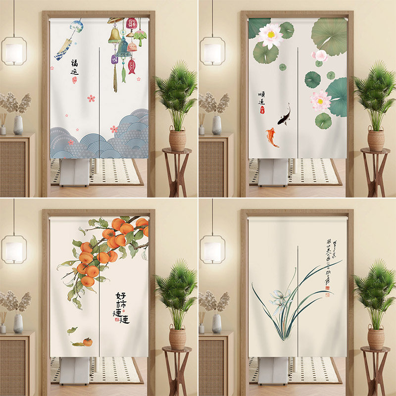 优质麻布中式遮挡门帘免打孔
