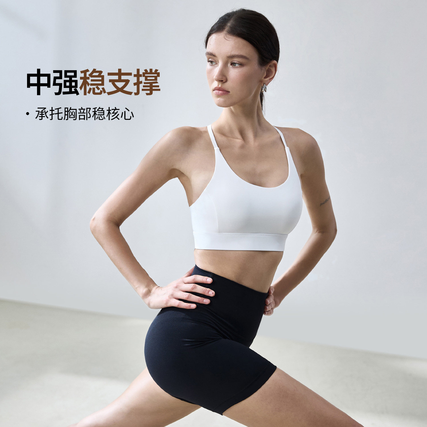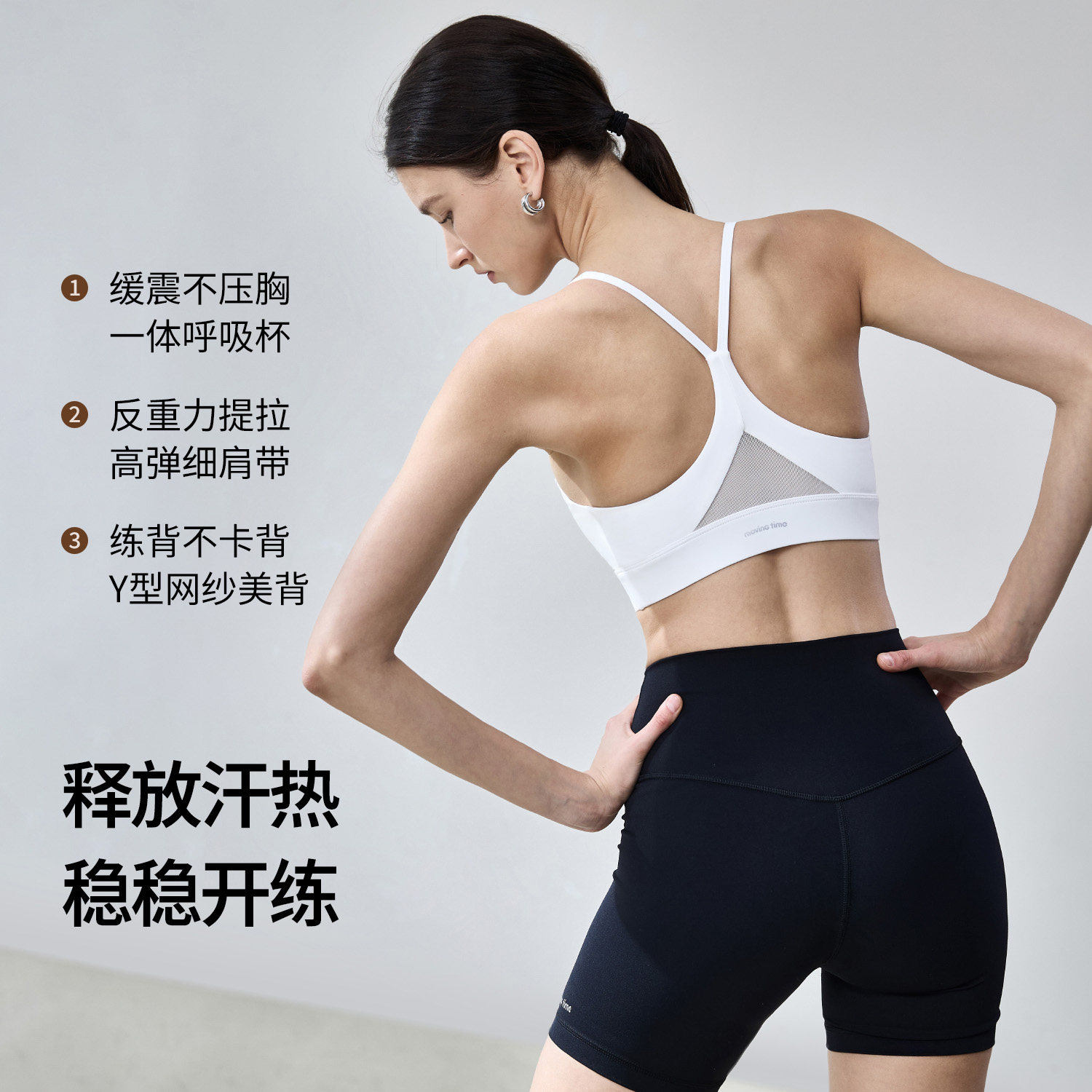 movingtime黑色瑜伽内衣细肩带女健身服文胸美背固定胸垫运动背心