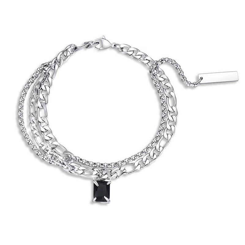 DH7黑钻吊坠多层可叠戴情侣手链轻奢小众精致高级感百搭钛钢手绳