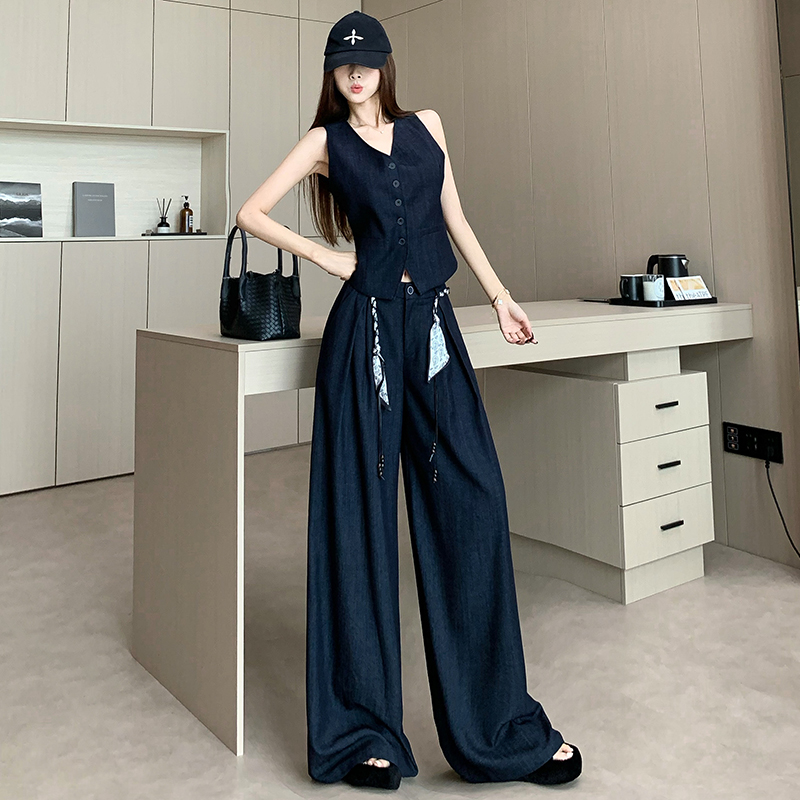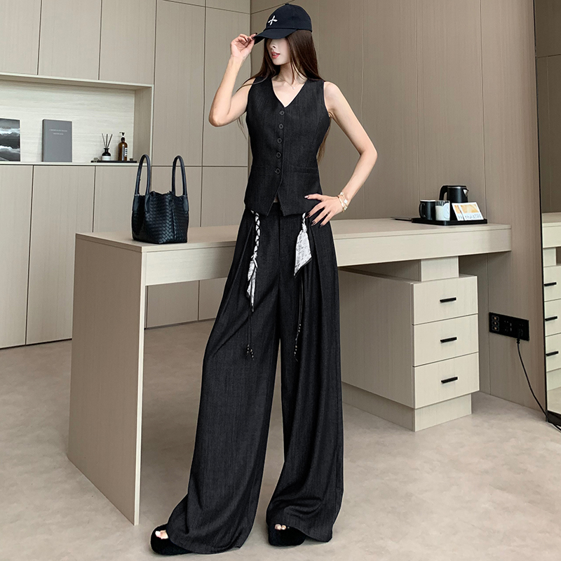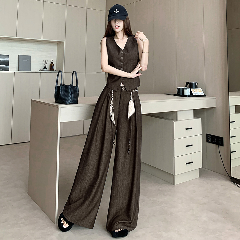 复古西装马甲套装女2025秋季新款百搭高级感休闲阔腿裤两件套潮