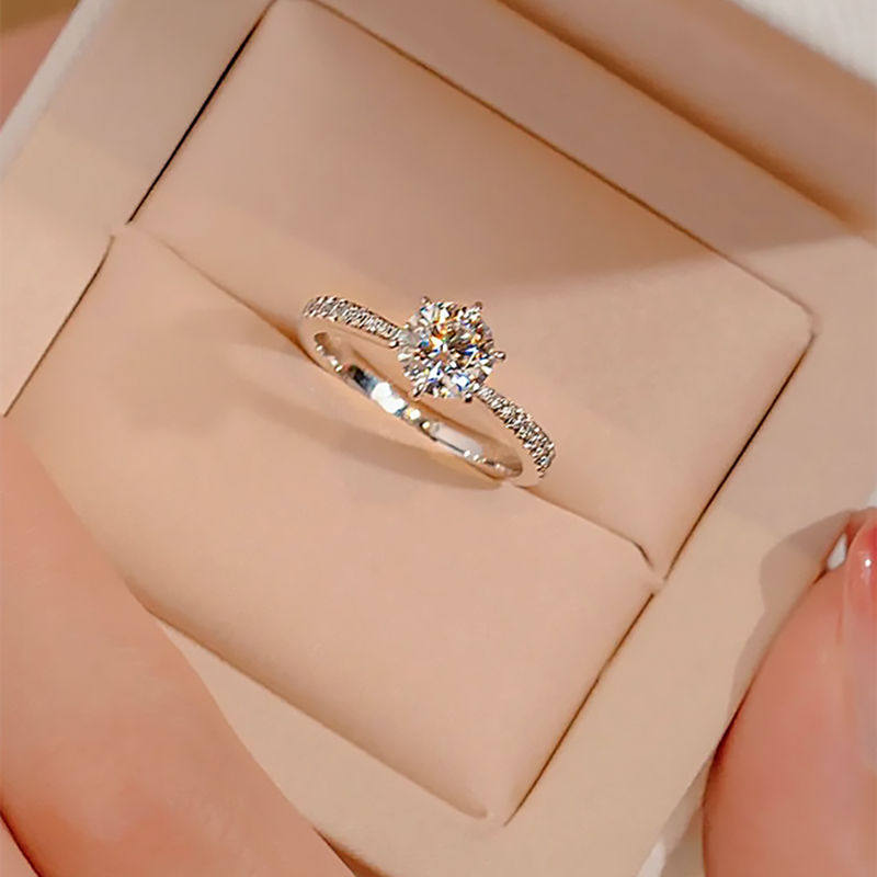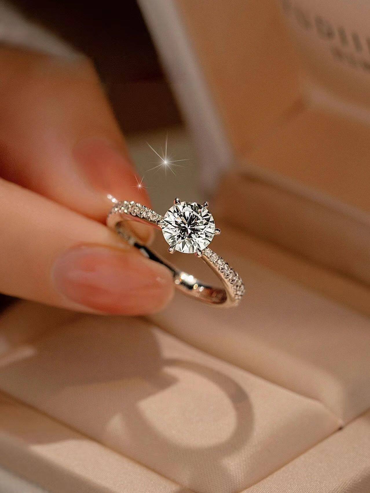 高级感一克拉莫桑石钻戒女纯银铂金结婚求婚钻石戒指送老婆礼物