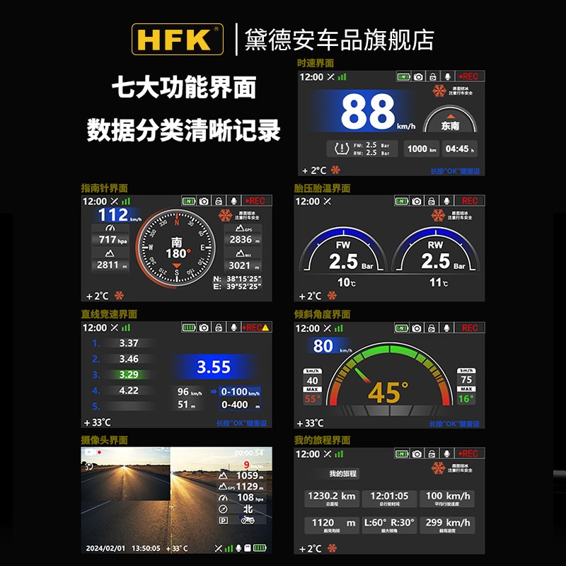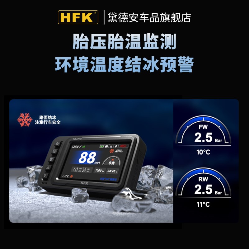 HFK HM603摩托车行车记录仪前后双镜头高清防水胎压监测机车HM702