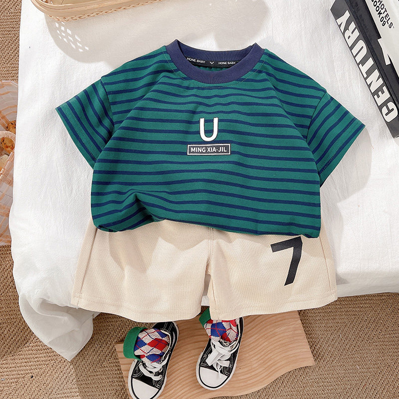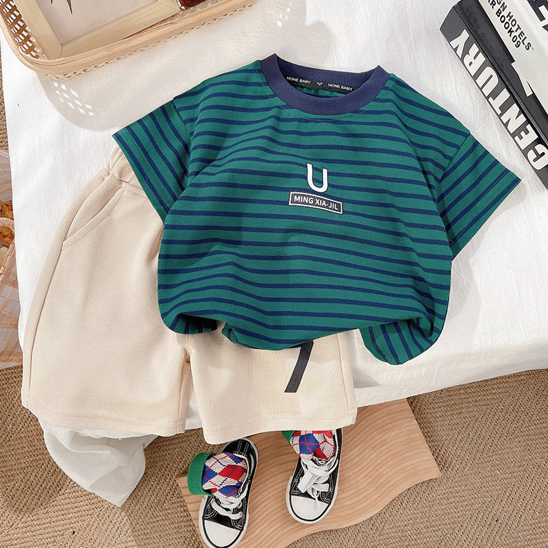 儿童套装童装男童休闲夏季夏装条纹运动洋气时尚百搭宽松小中童