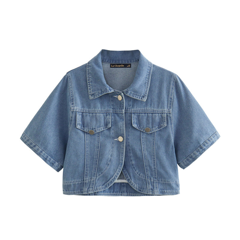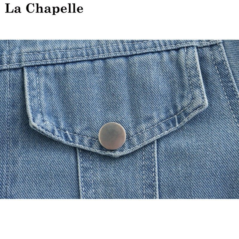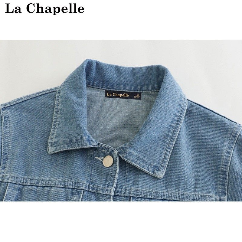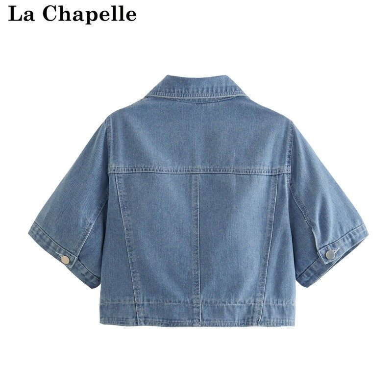 拉夏贝尔/La Chapelle夏季轻薄款牛仔外套女短袖浅色百搭披肩上衣
