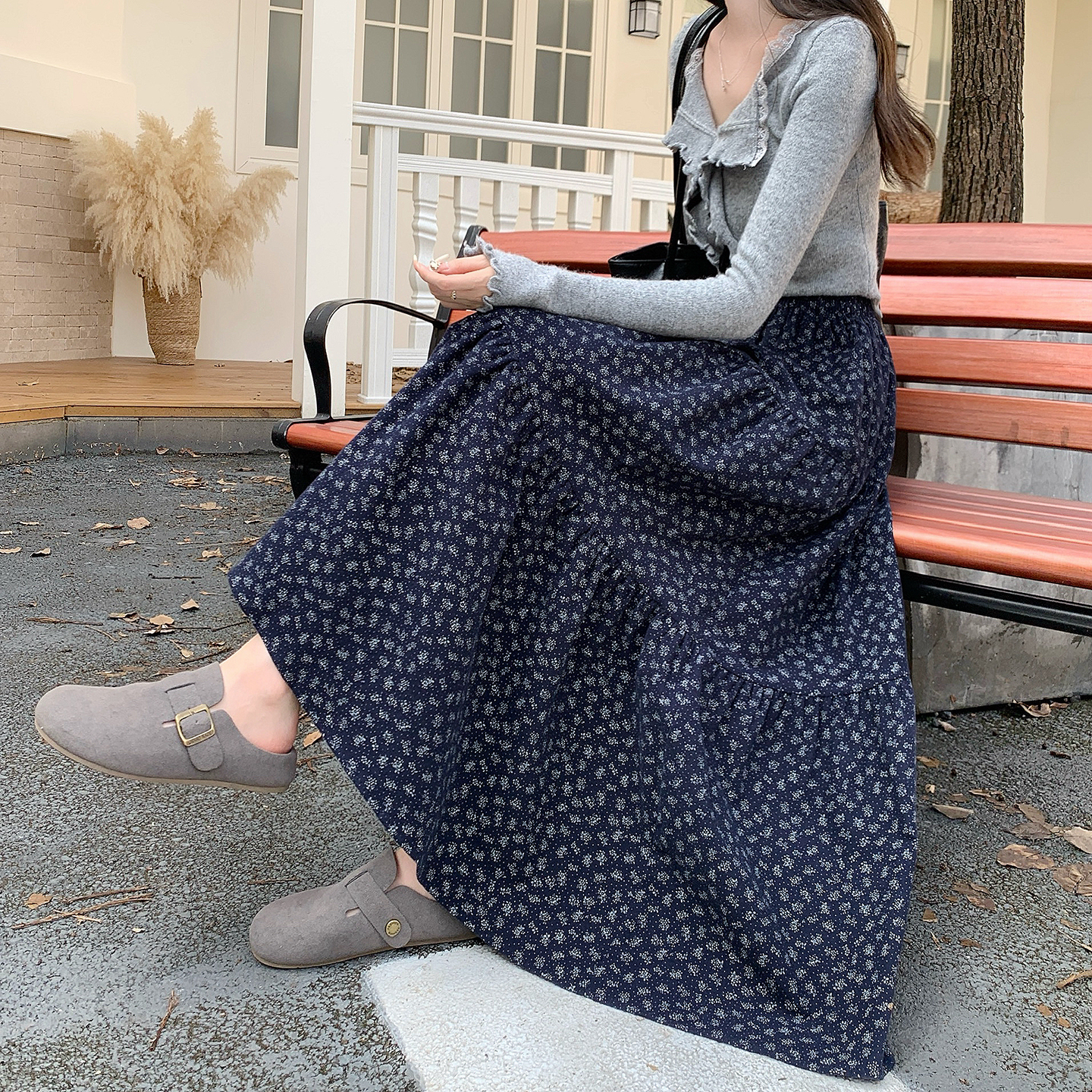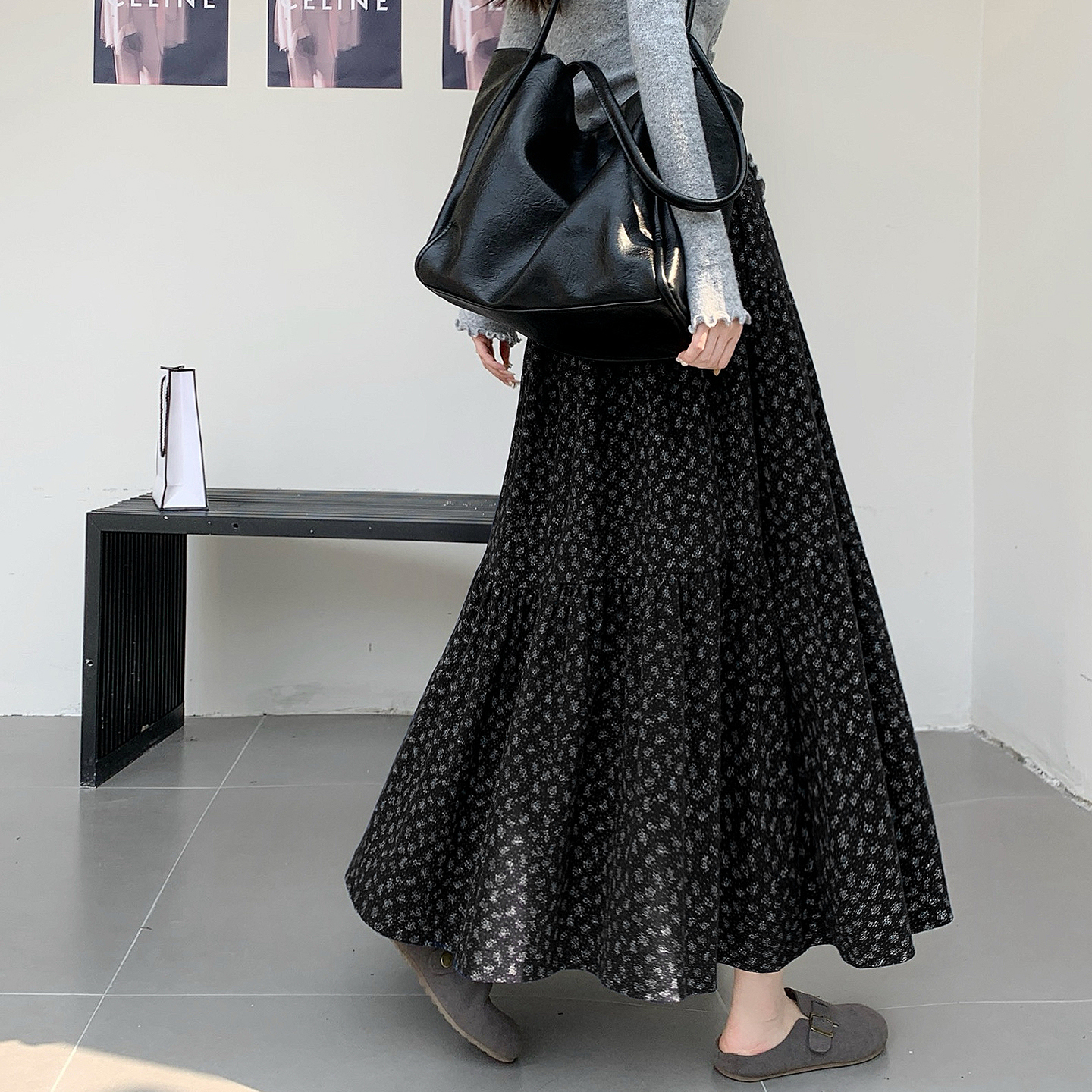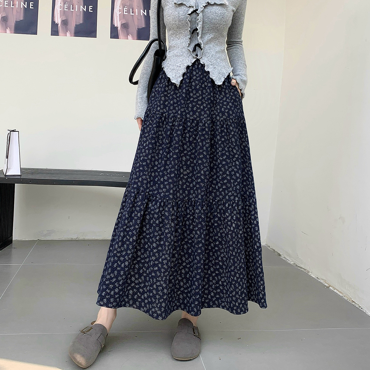 复古碎花半身裙女2025秋冬新款高腰显瘦a字裙气质垂感长裙大摆裙