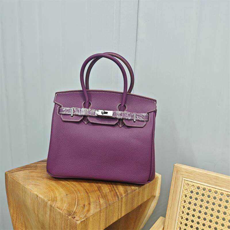 头层牛皮原版银扣欧货铂金真皮手提锁扣单肩斜挎2025新款女包