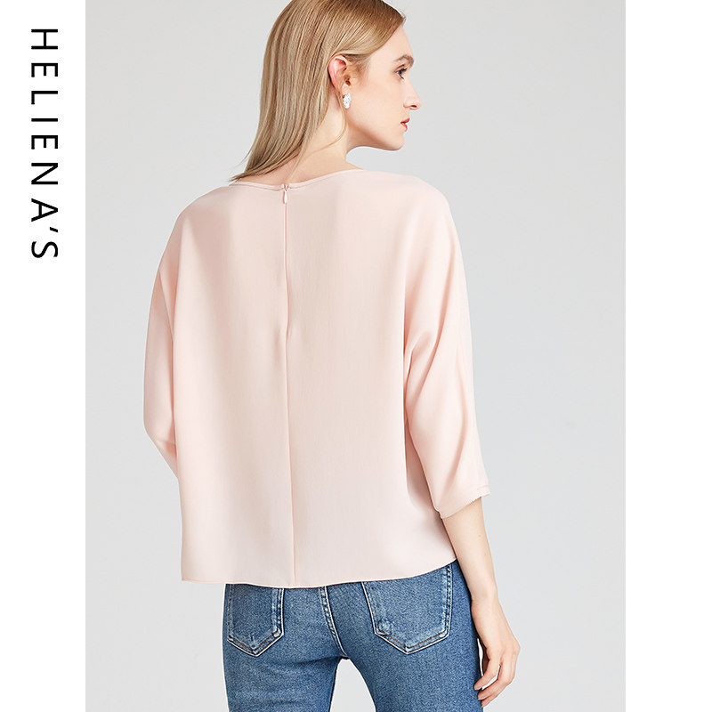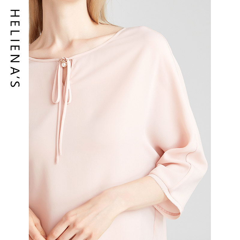 海兰丝2024夏新款气质九分袖遮肉上衣甜美粉色大码套头雪纺小衫女