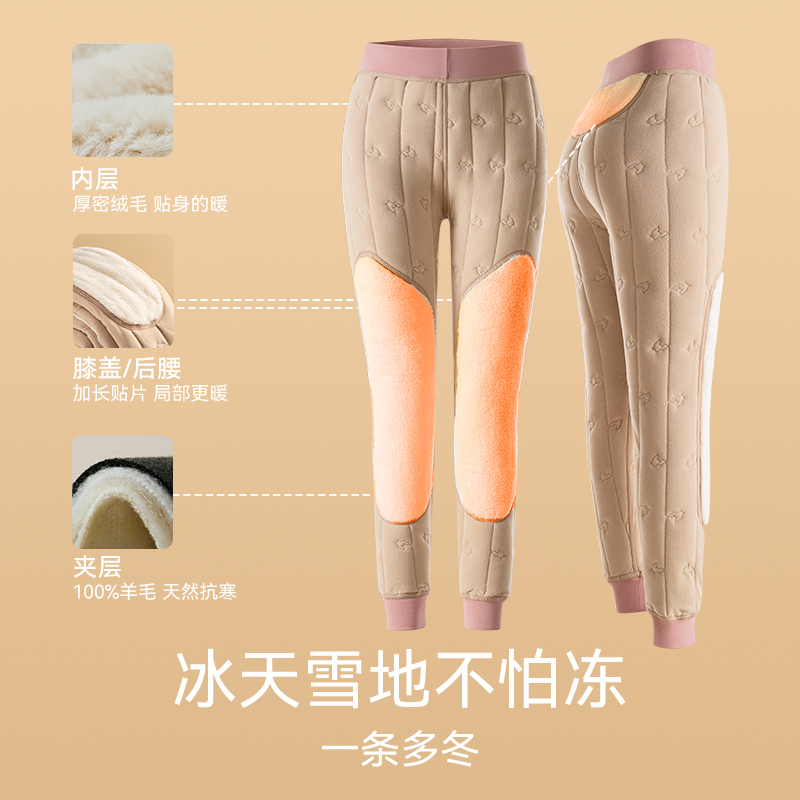 100%羊毛裤打底棉裤加绒加厚冬季女士内穿东北特厚护膝大码保暖裤