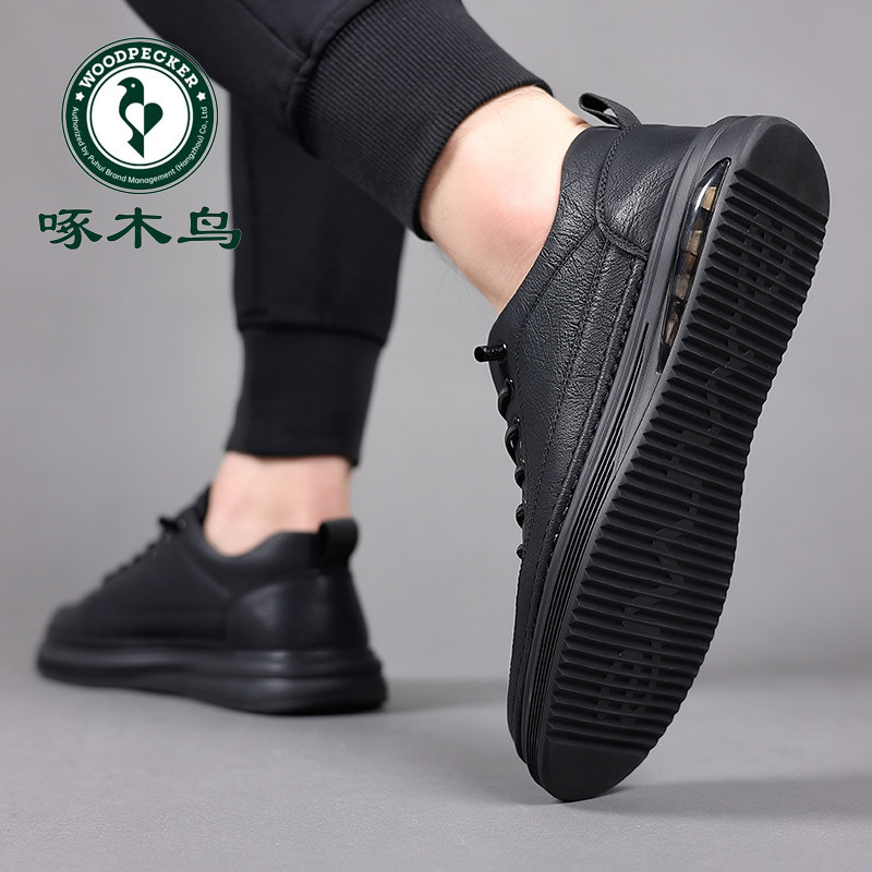 啄木鸟男鞋秋冬2023新款男士真皮加绒休闲皮鞋潮流百搭男运动板鞋