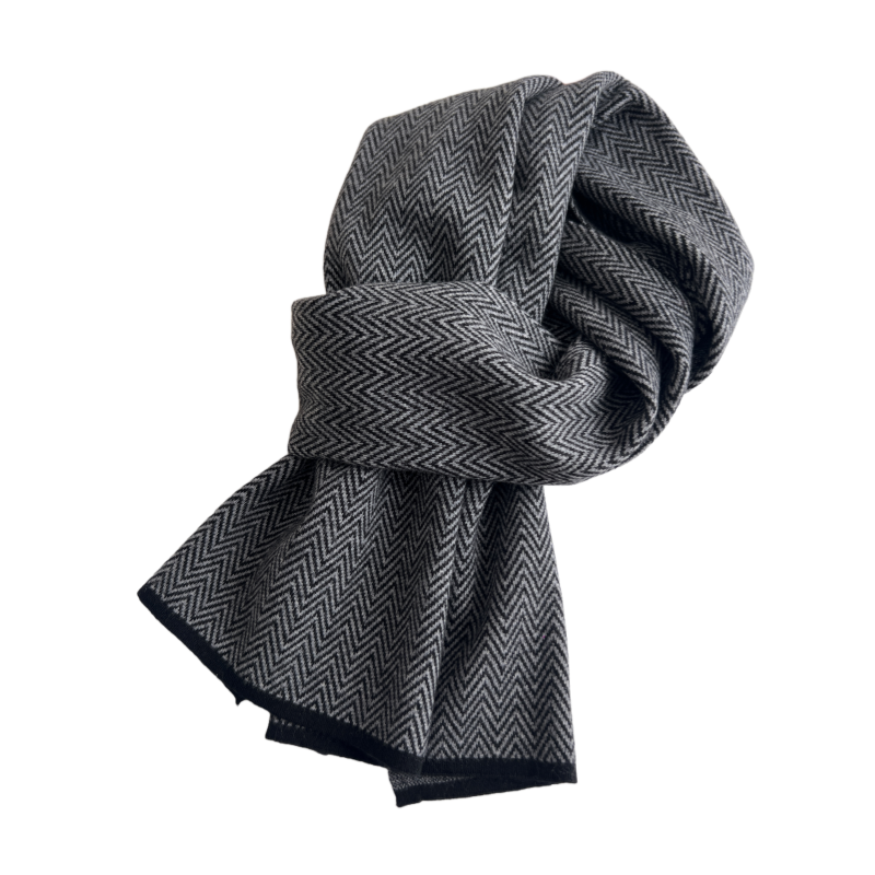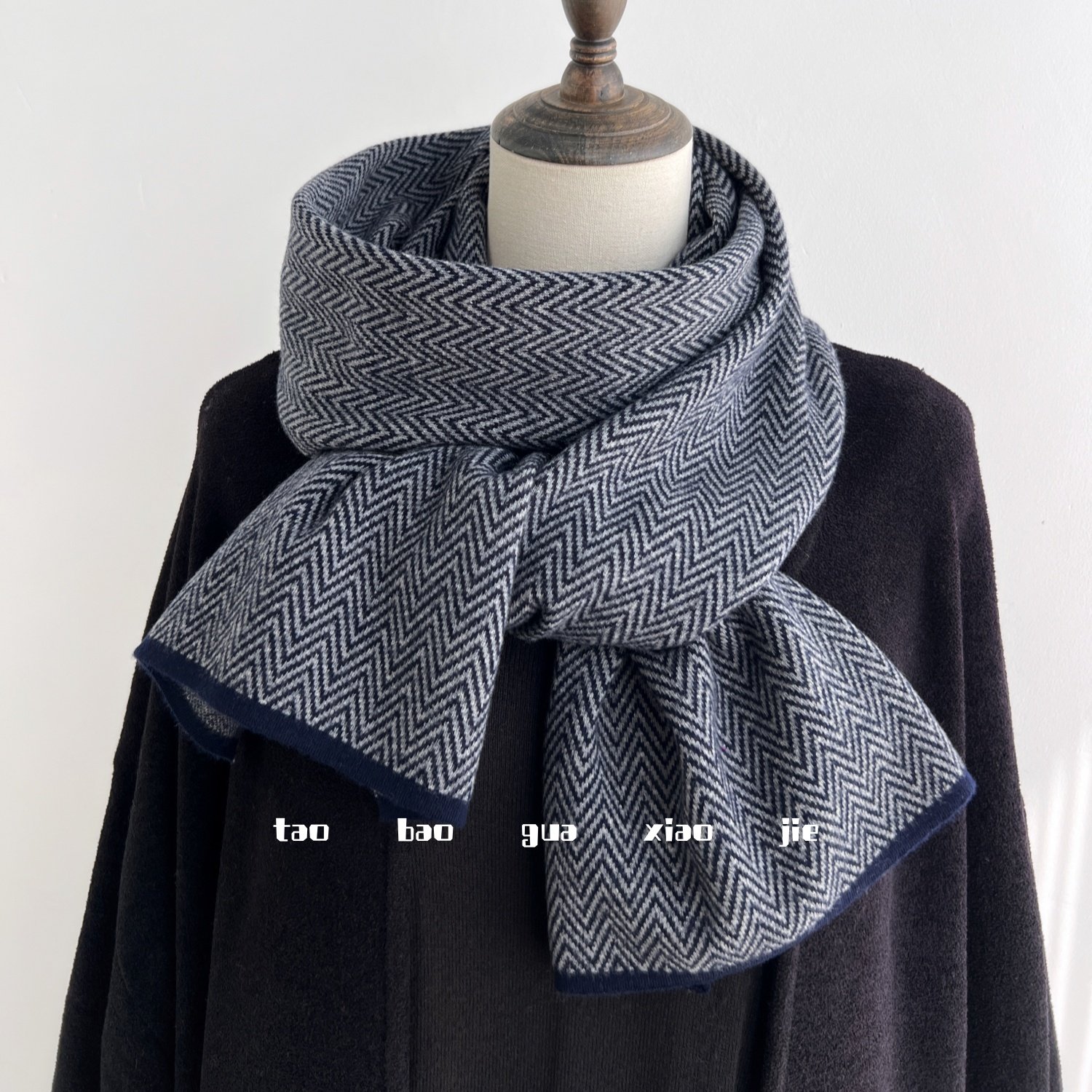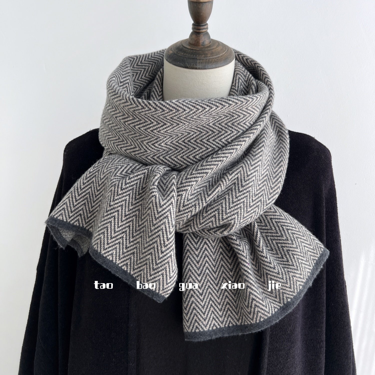 人字纹针织毛线水波纹围巾黑灰色女秋冬季保暖围脖百搭经典保暖男
