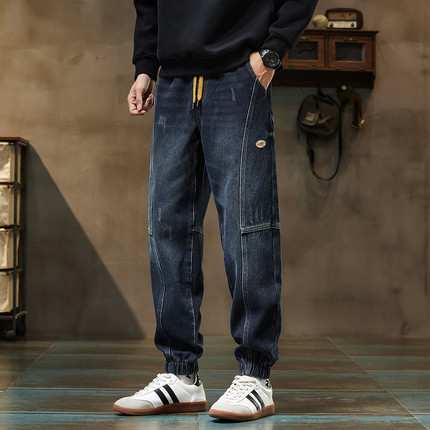 唐狮2025秋冬男束脚牛仔长裤加绒加厚宽松休闲风男裤百搭潮流裤子