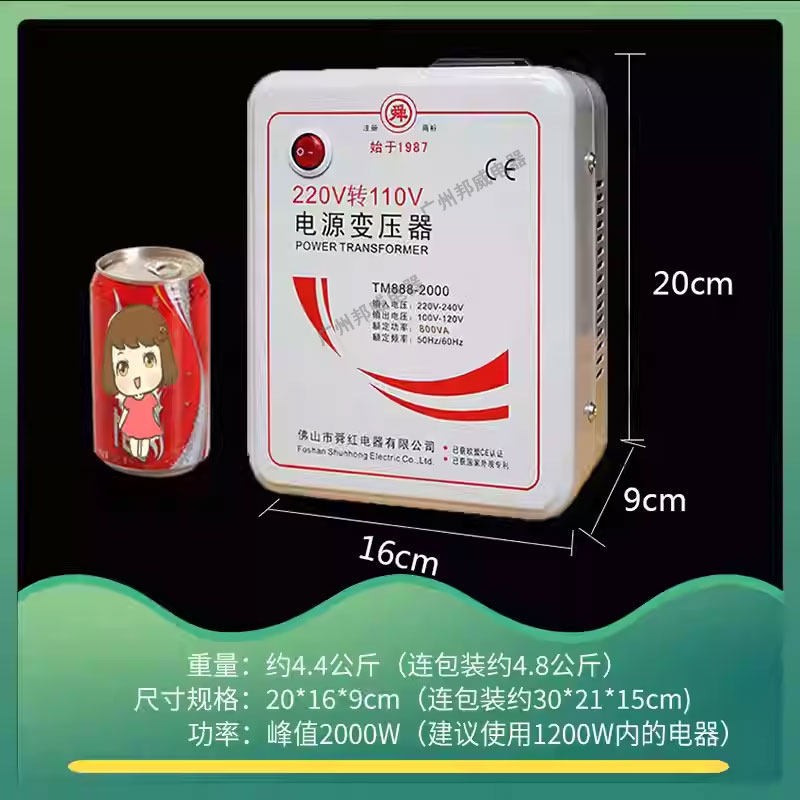 舜红2000W220V转110V100V变压器110V转220V美国日本电饭锅转换器