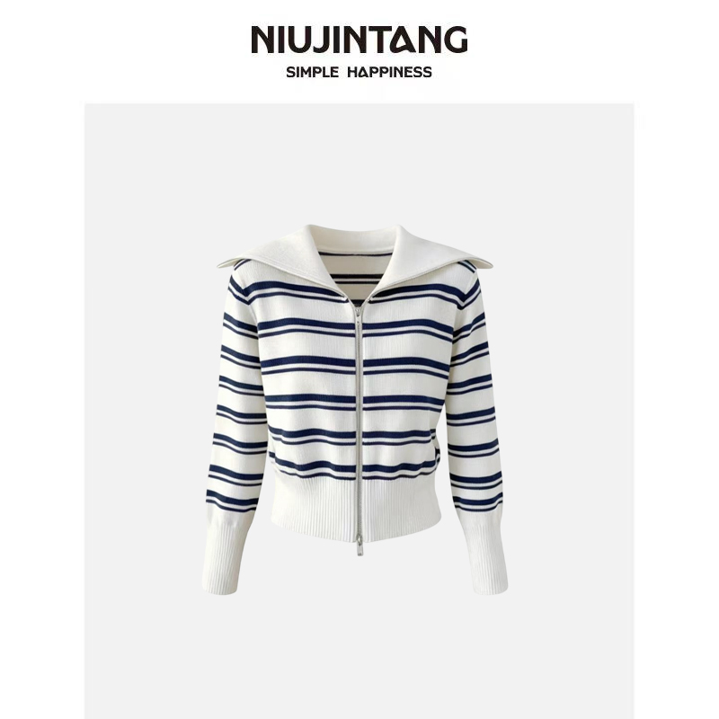 【所有女生直播间】NJT条纹撞色+纯色长袖针织双拉链开衫MJ061